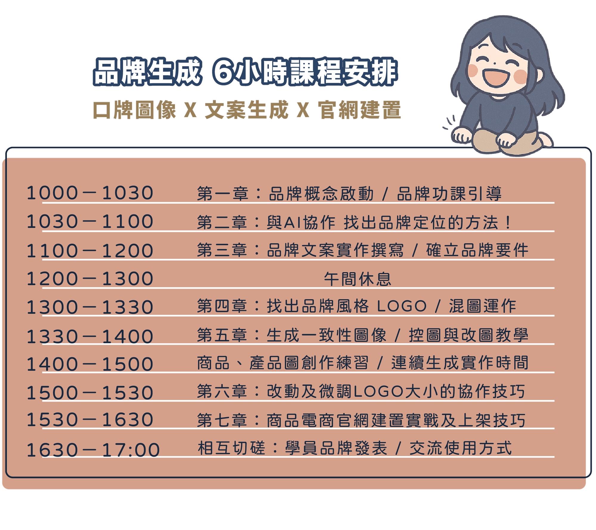 無需設計背景,只要一個概念萌芽,一日之內,教你透過與AI協作,打造你的專屬品牌到電商官網!透過全套AI工作流教學,從品牌概念、Logo設計到官網建置,實戰打造你心中理想的品牌形象!