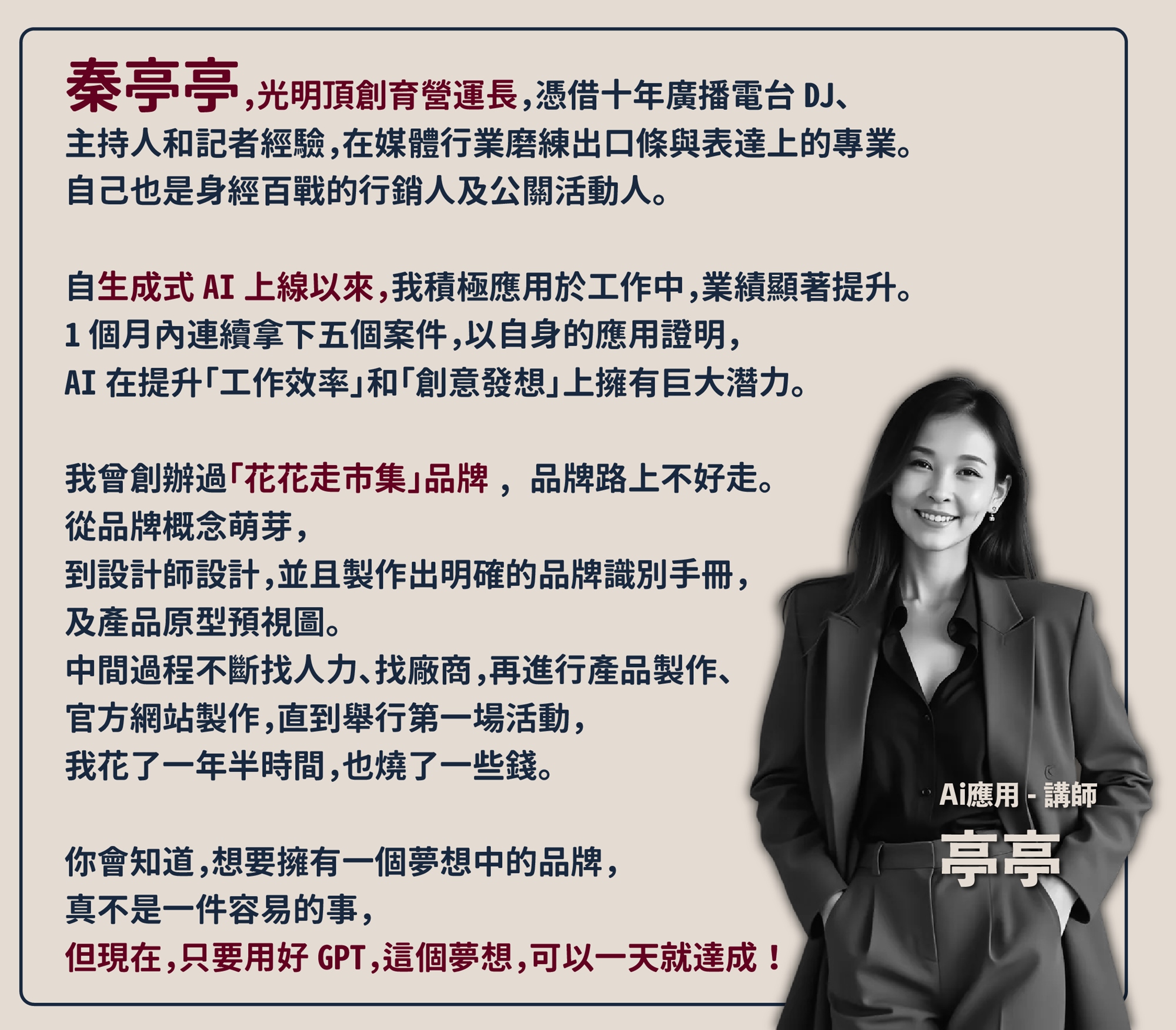 - 讓你學會使用GPT,從品牌構思到品牌文案,生成Logo到產品,一套武功全學會。