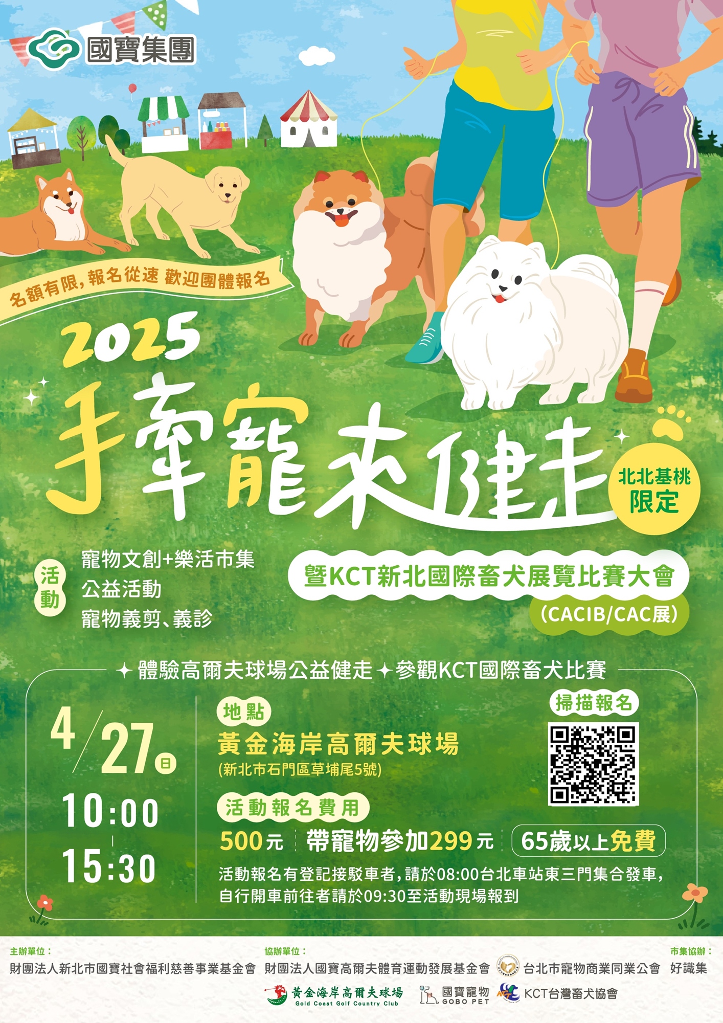 由國寶集團主辦,台北市寵物商業同業公會與相關單位共同協辦的《2025手牽寵來健走》活動,即將於2025年4月27日(星期日)在黃金海岸高爾夫球場盛大登場!