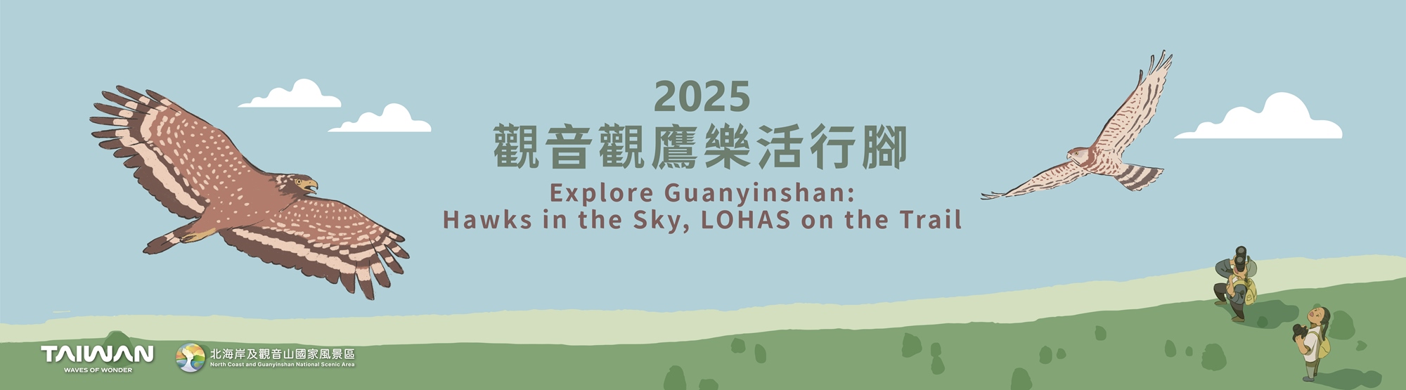 活動簡介:專業導覽員帶你走進觀音山,解鎖猛禽的小秘密,學習辨識牠們的飛行姿態、生態習性,捕捉每刻老鷹翱翔天際的帥氣瞬間!