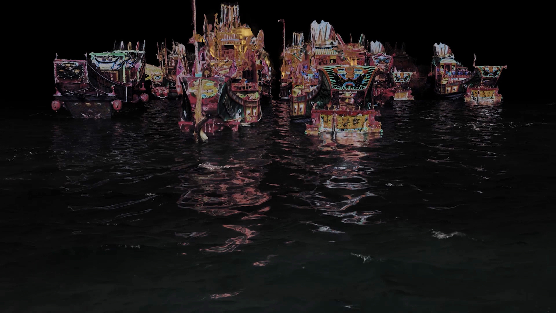 1978年,澎湖西吉嶼遷村後成為無人島,王船儀式依然深植集體記憶,象徵對亡魂的安息與不捨。儀式中,遺體安置於王船,漂向大海,隱喻靈魂歸返與生命輪迴。黑水溝流域船難歷史賦予此儀式深刻的精神意涵。影片無旁白、無字幕,透過畫面與聲音重現儀式,並結合3D掃描與電腦動畫,探索海洋文化的情感與歷史脈絡。
