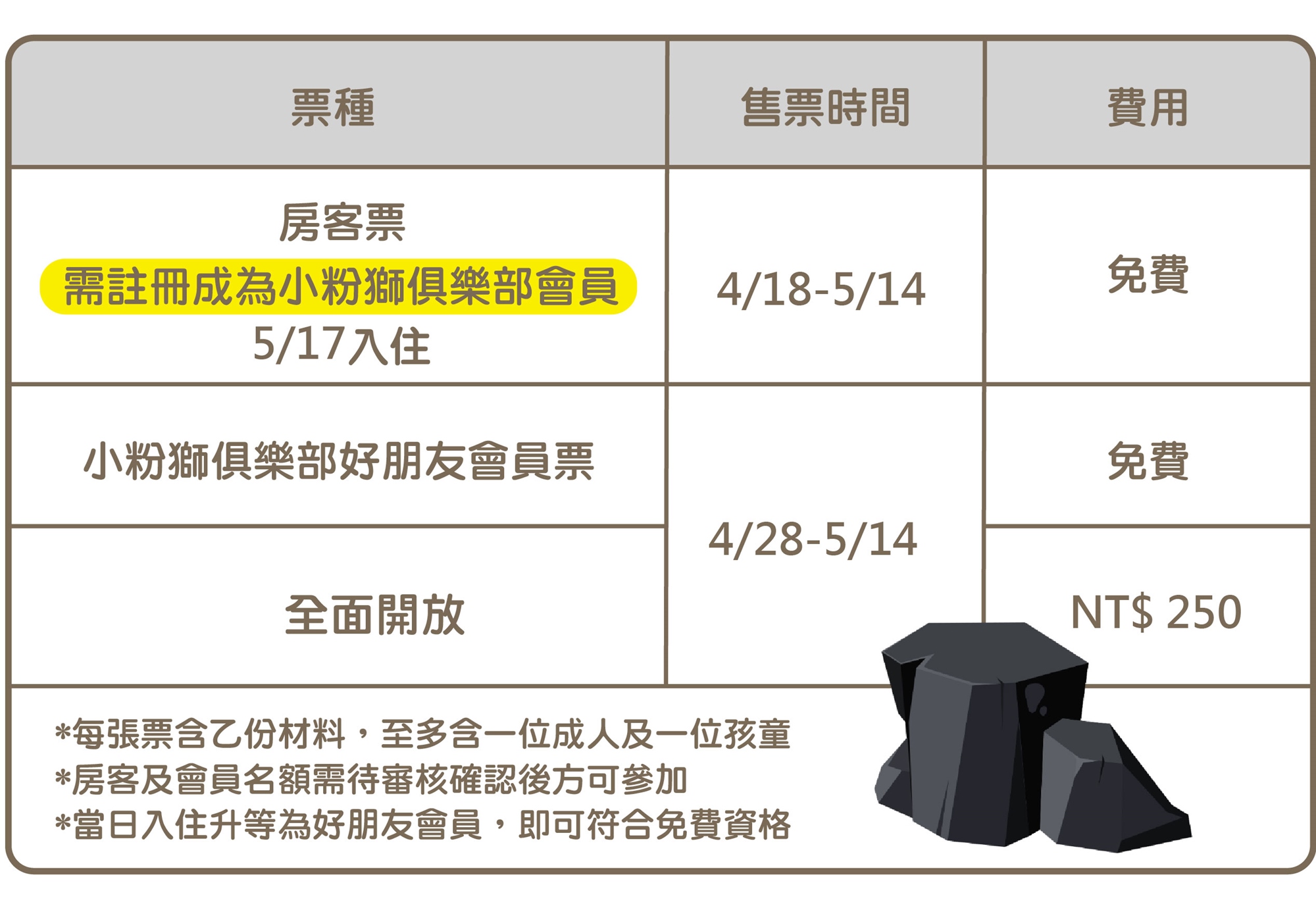 ●注意事項:每房最多兩組免費名額,如超過需另行購買一般票
