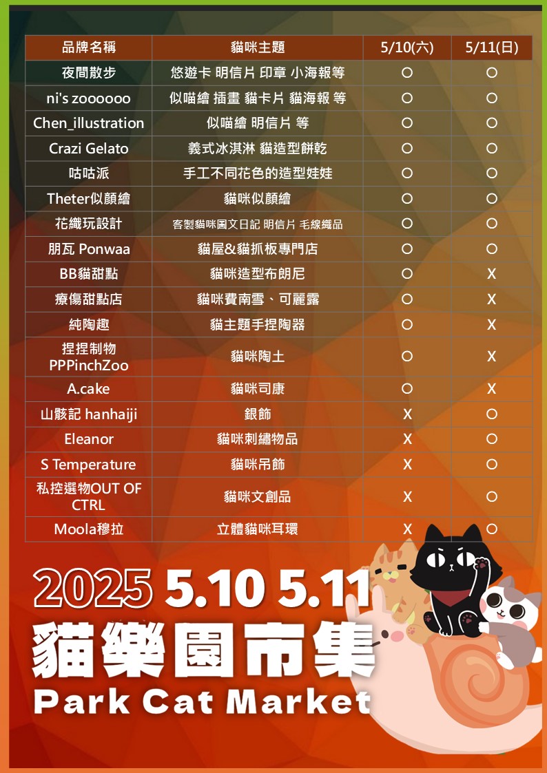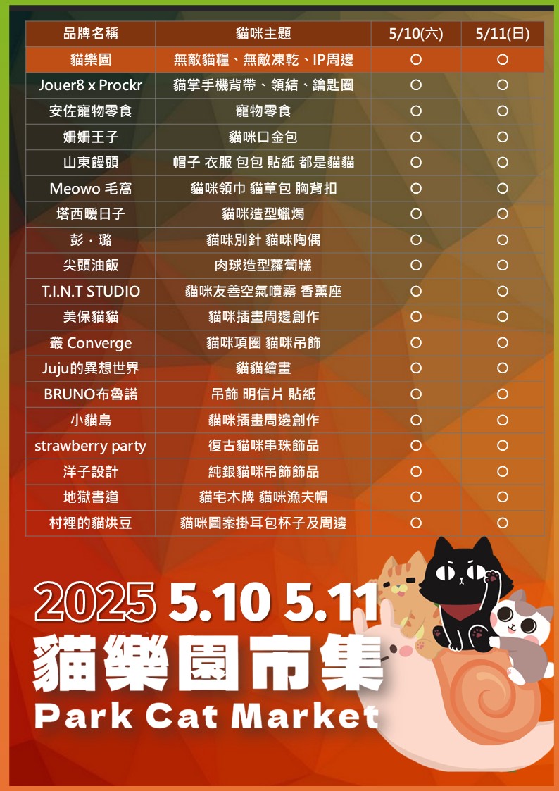 5/10(六) 、5/11(日)歡迎到現場逛逛貓樂園市集,度過一個可愛療癒的周末下午吧~