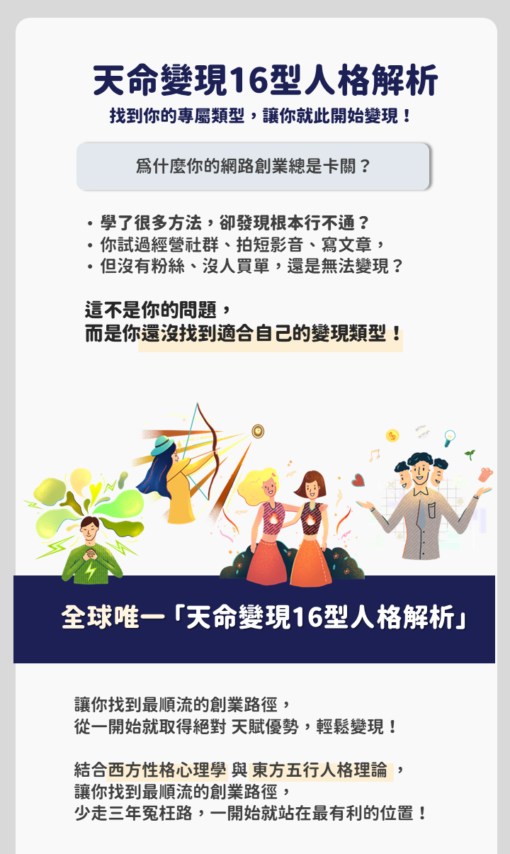 【限時免費】天命變現16型人格測驗+培訓 (假日場)【天命事業系列】