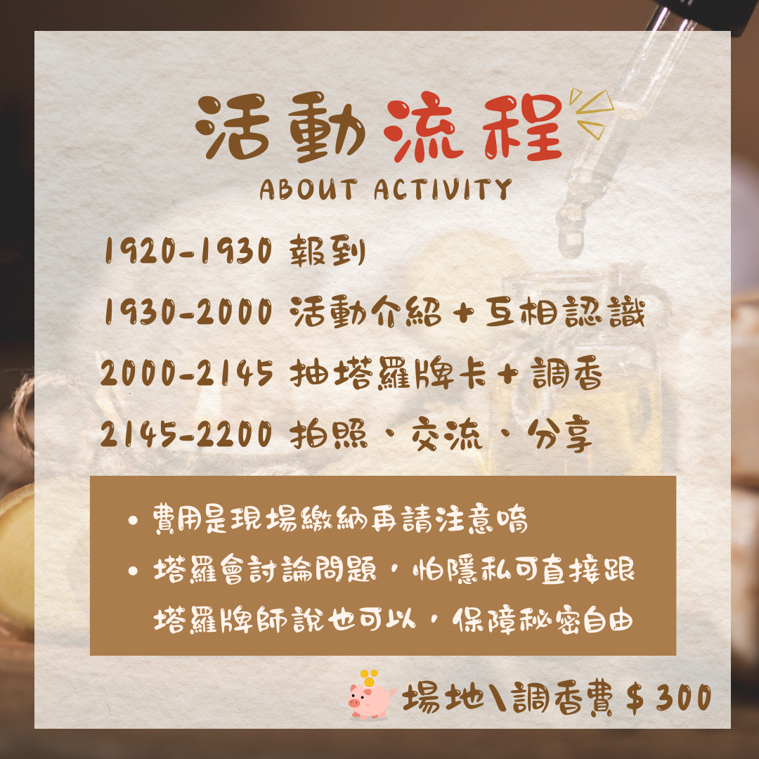 活動費用:300元/人(場地+調香費,現場付款)