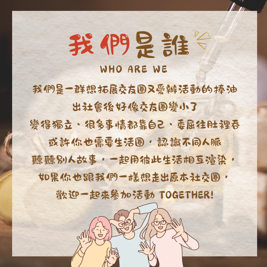 我們是一群想拓展交友圈又愛辦活動的捧油