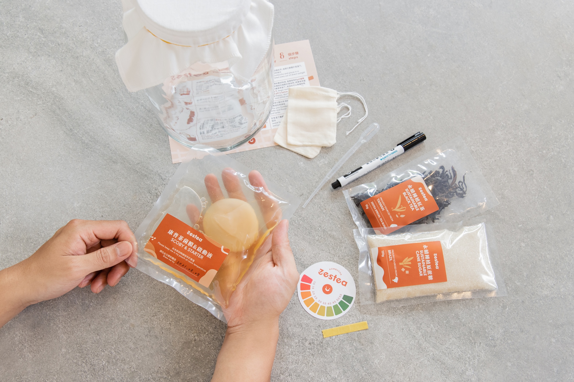 在 Zestea 自釀組內,您將找到釀造康普茶所需的一切,還有最重要的 Zestea 康普茶菌膜 SCOBY,輕鬆展開風味探索,釀出專屬自己的天然康普茶。(詳細工具包請見:連結)