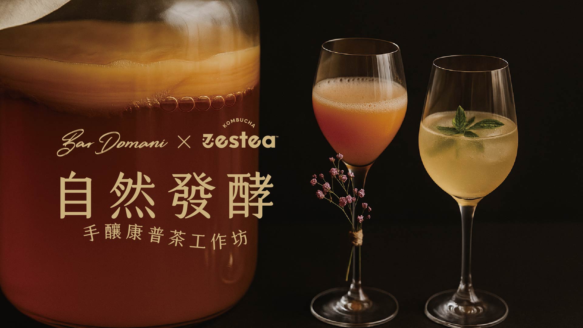以無酒精氣泡香檳為靈感,Bar Domani 攜手台灣在地康普茶品牌 Zestea,共同打造的【自然發酵・手釀康普茶工作坊】,邀您親手體驗康普茶釀造樂趣。