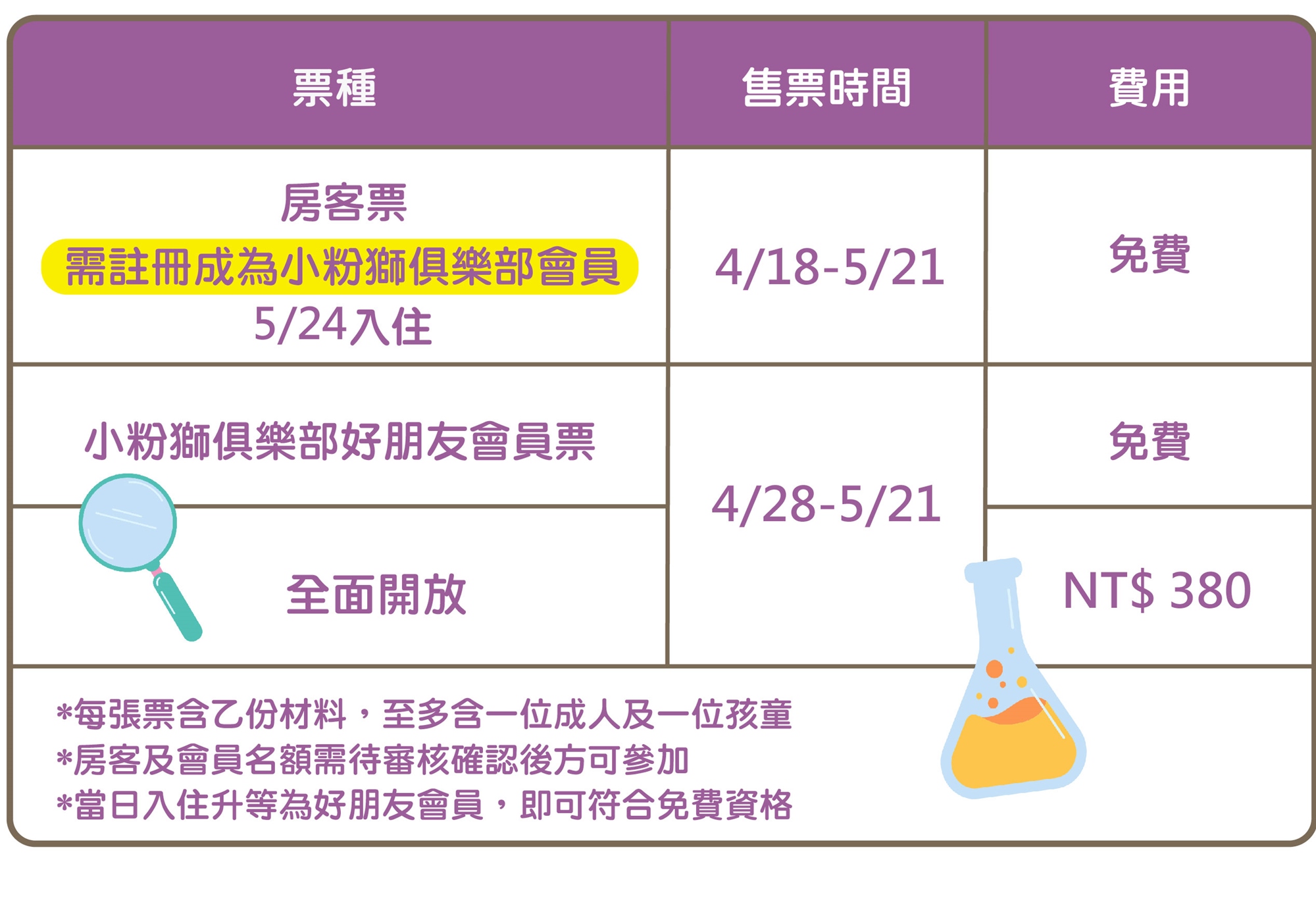 ●注意事項:每房最多兩組免費名額,如超過需另行購買一般票