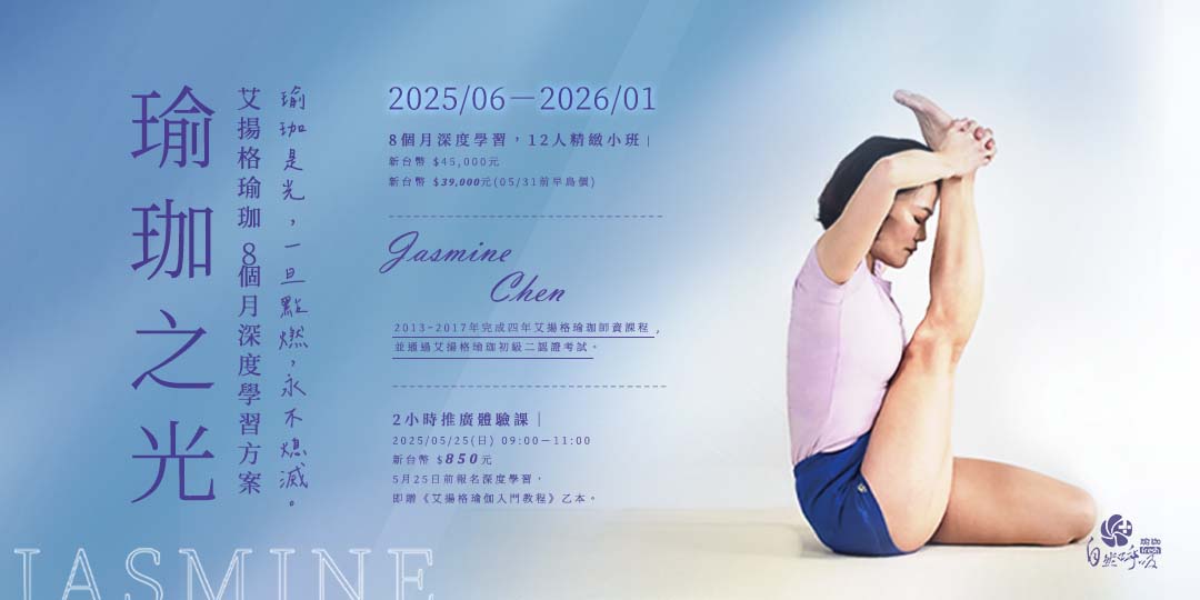 邀請您參加由 Jasmine Chen 親授的「瑜珈之光」推廣體驗課,感受艾揚格瑜珈的深度魅力。