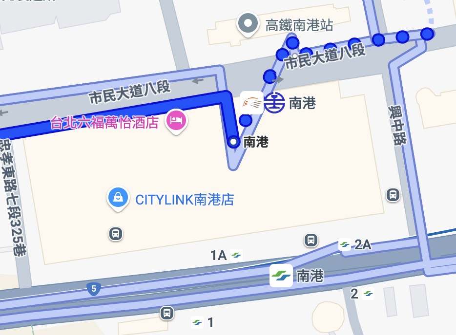203、205、212、276、281、306、306區、551、600、605、605副、605新台五、629、668、678、711、小1區、小5、小5區、民權幹線、藍15、藍23(南港行政中心站)