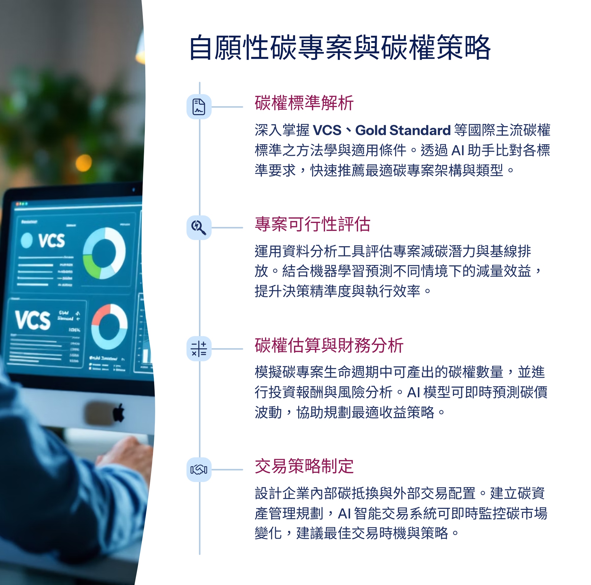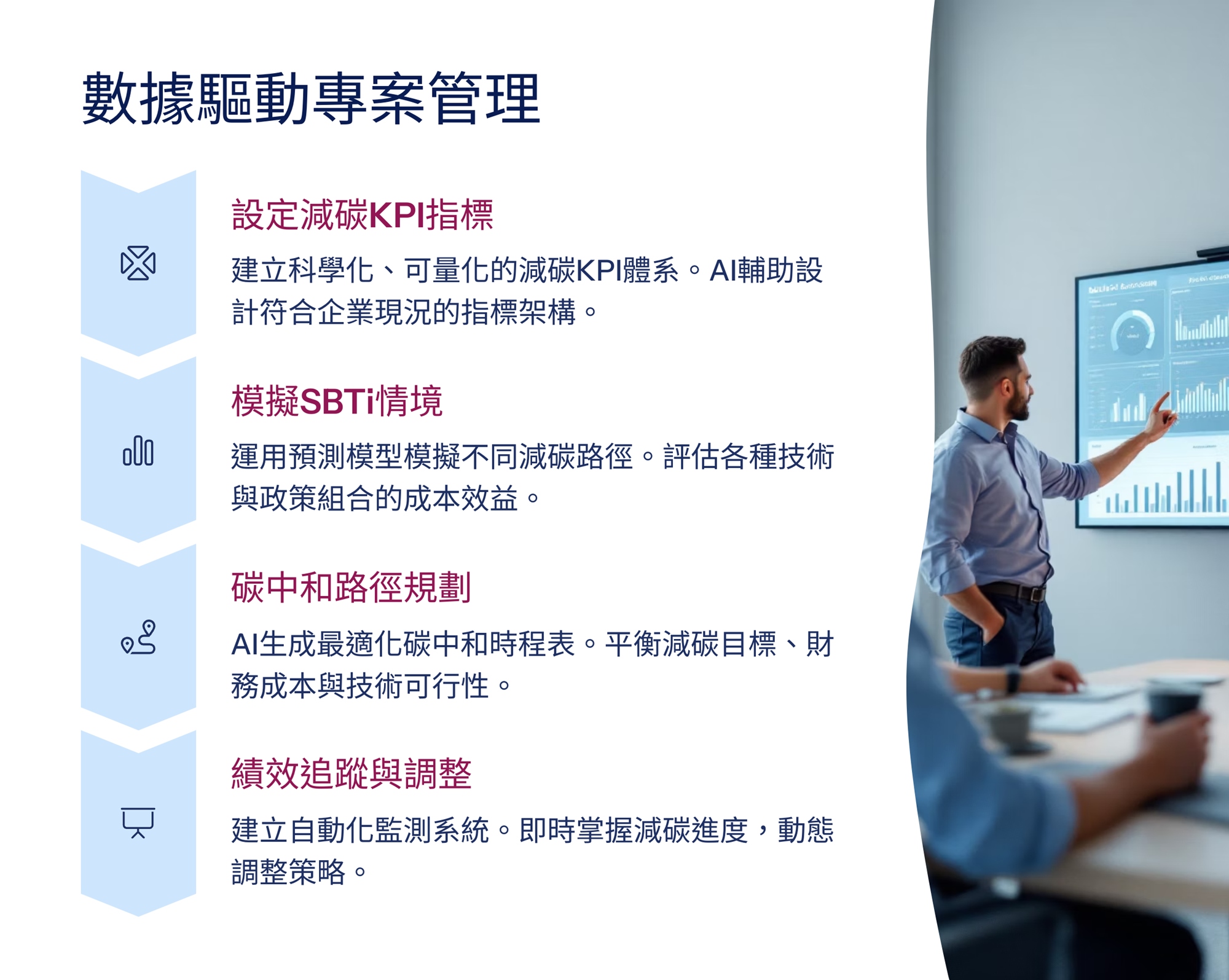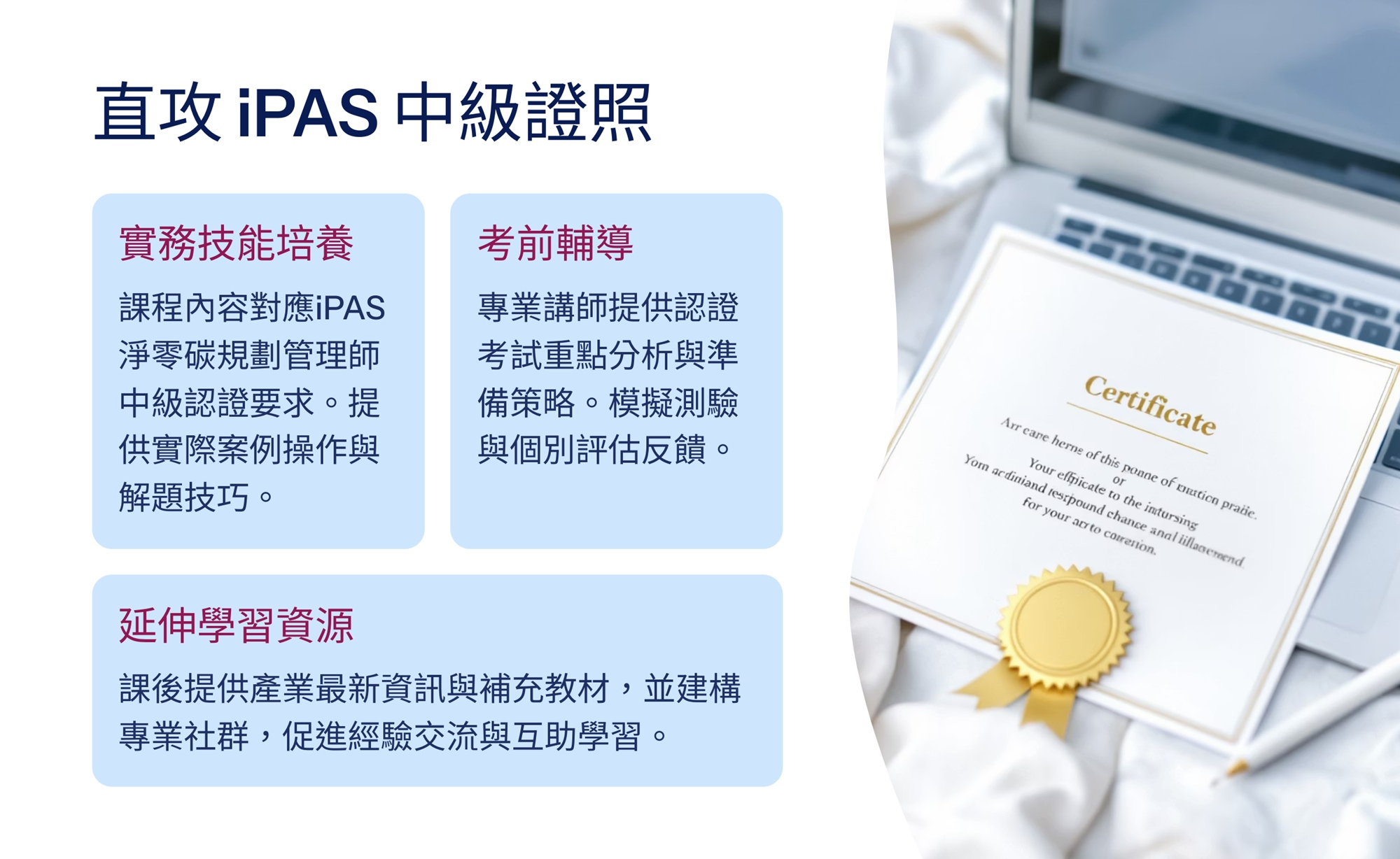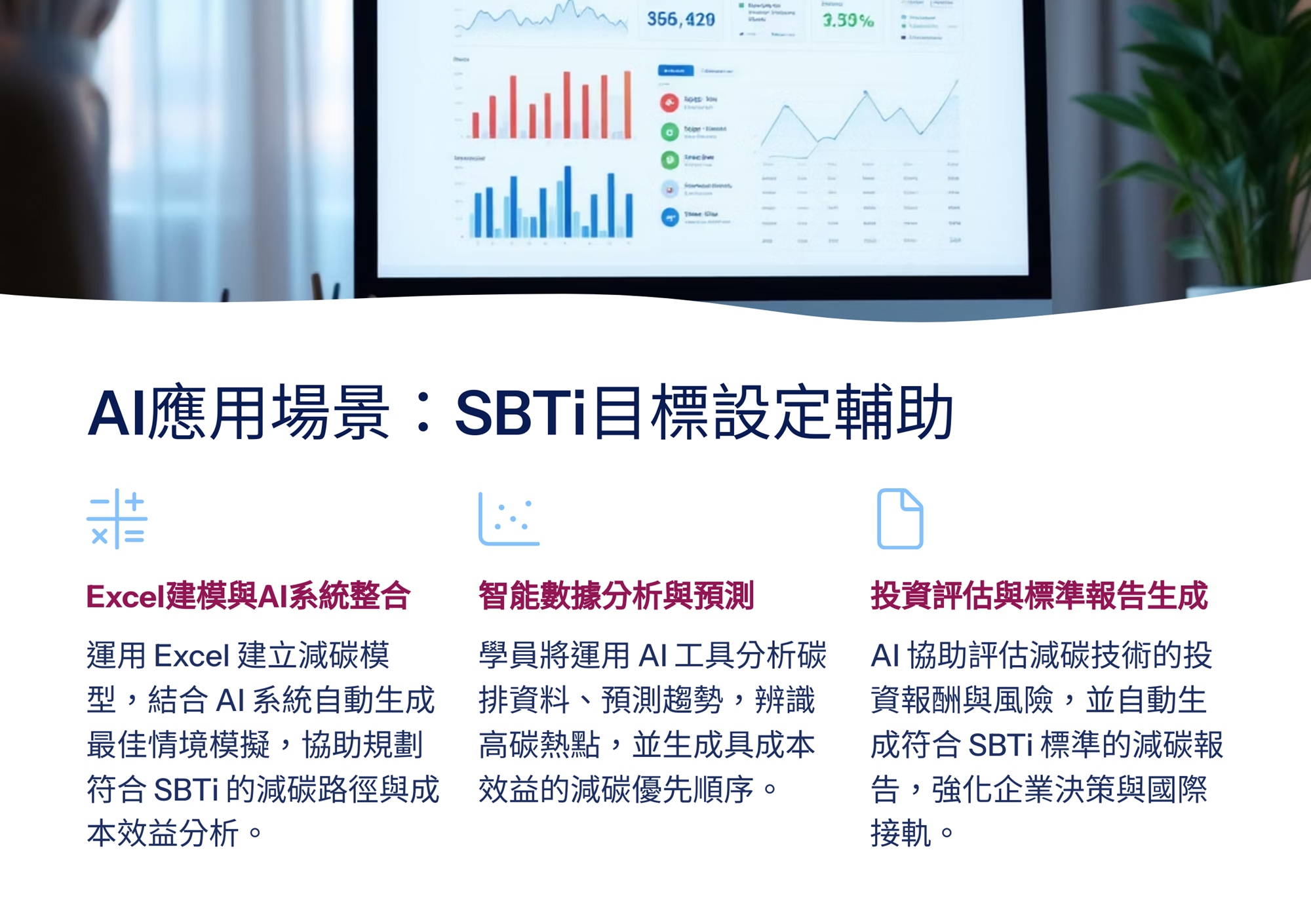 本課程旨在培養學員運用 AI 技術推動數位轉型與淨零碳管理,強化碳排放數據分析、預測與優化能力,並掌握國際法規遵循與企業永續轉型策略。課程涵蓋 AI 應用、跨部門專案管理與團隊領導,幫助學員提升實務操作與決策能力。結業後,學員可參加 iPAS 淨零碳規劃管理師中級認證,提升職場競爭力,協助企業導入AI技術推動永續轉型,加速實現淨零目標。
