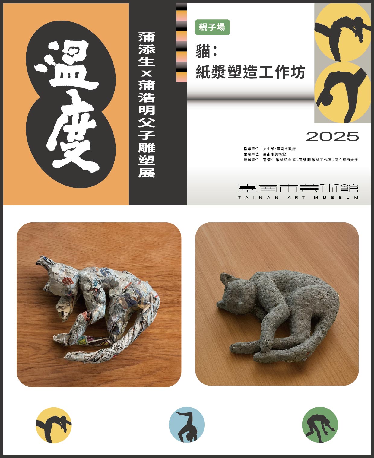 以雕塑家蒲添生《睡貓》作品為發想,讓親子觀眾一起把生活中所觀察到的貓的姿態,透過紙漿雕塑記錄下來。