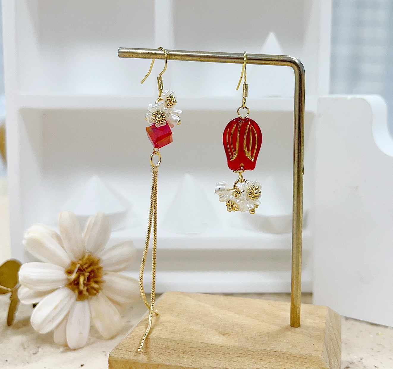 「獻給媽媽的四種手作提案|珍珠花卉耳環」