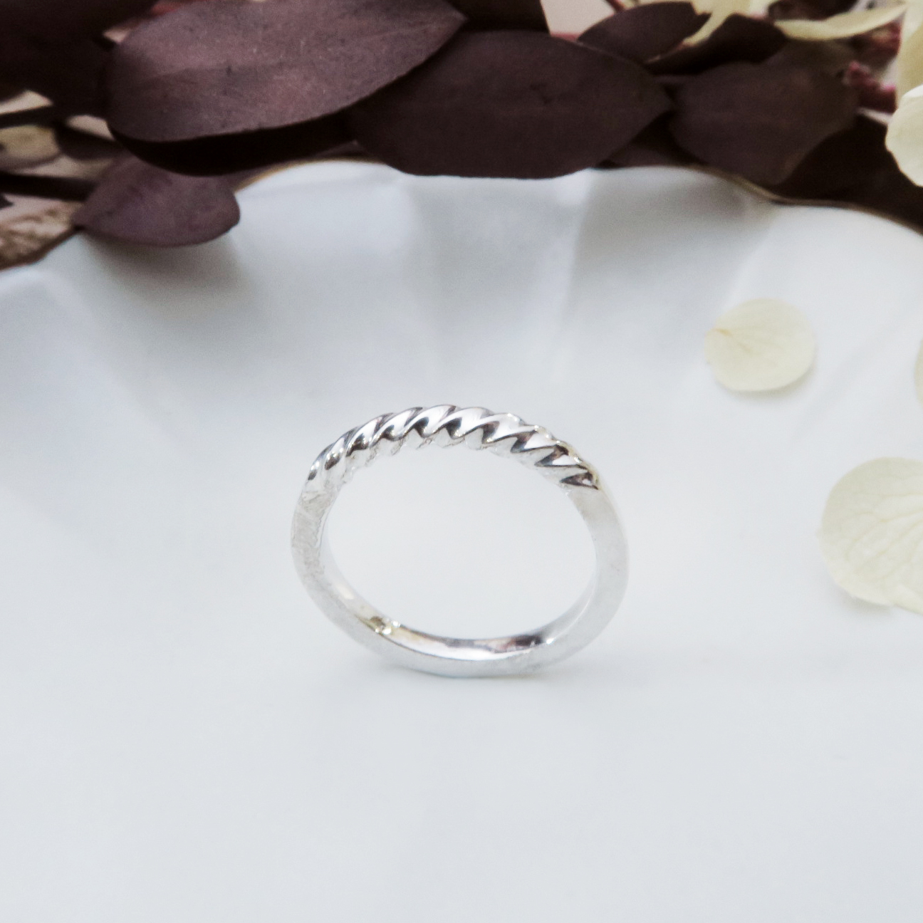 以方型銀線扭轉出疏密不同的造型,編織屬於您的獨特光影迴旋銀戒。