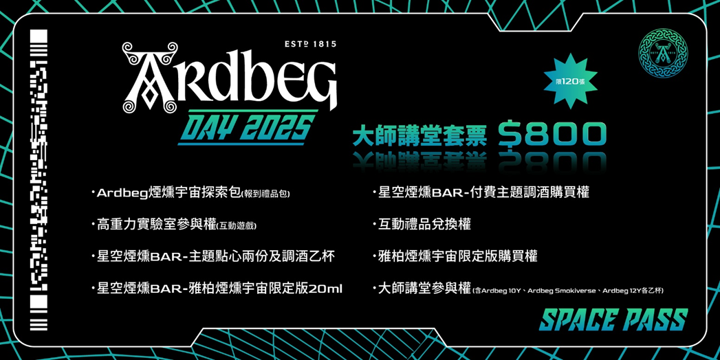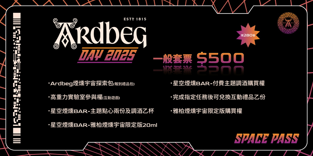 - 套票限定內容:可享有2杯Ardbeg經典款及1杯2025年限量款純飲