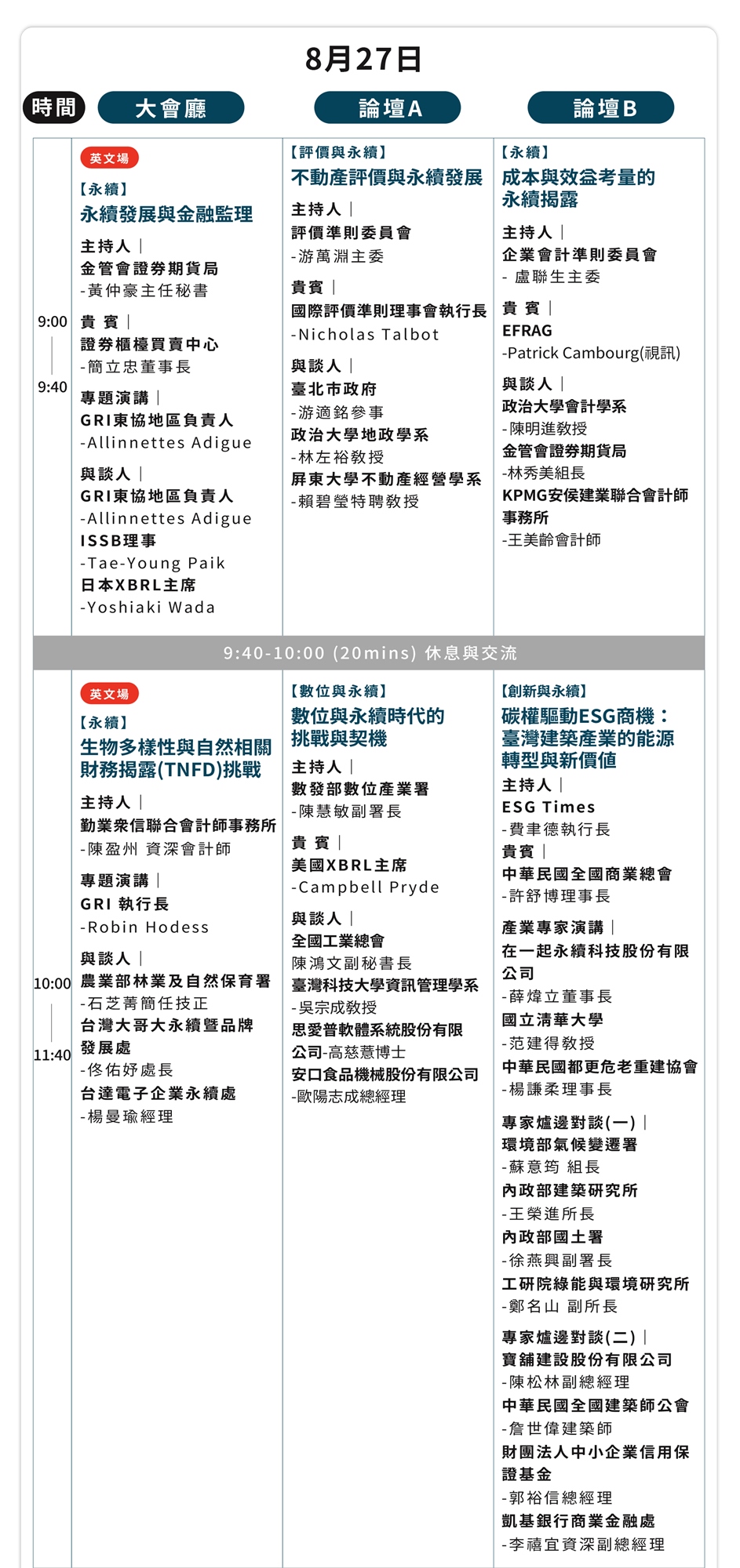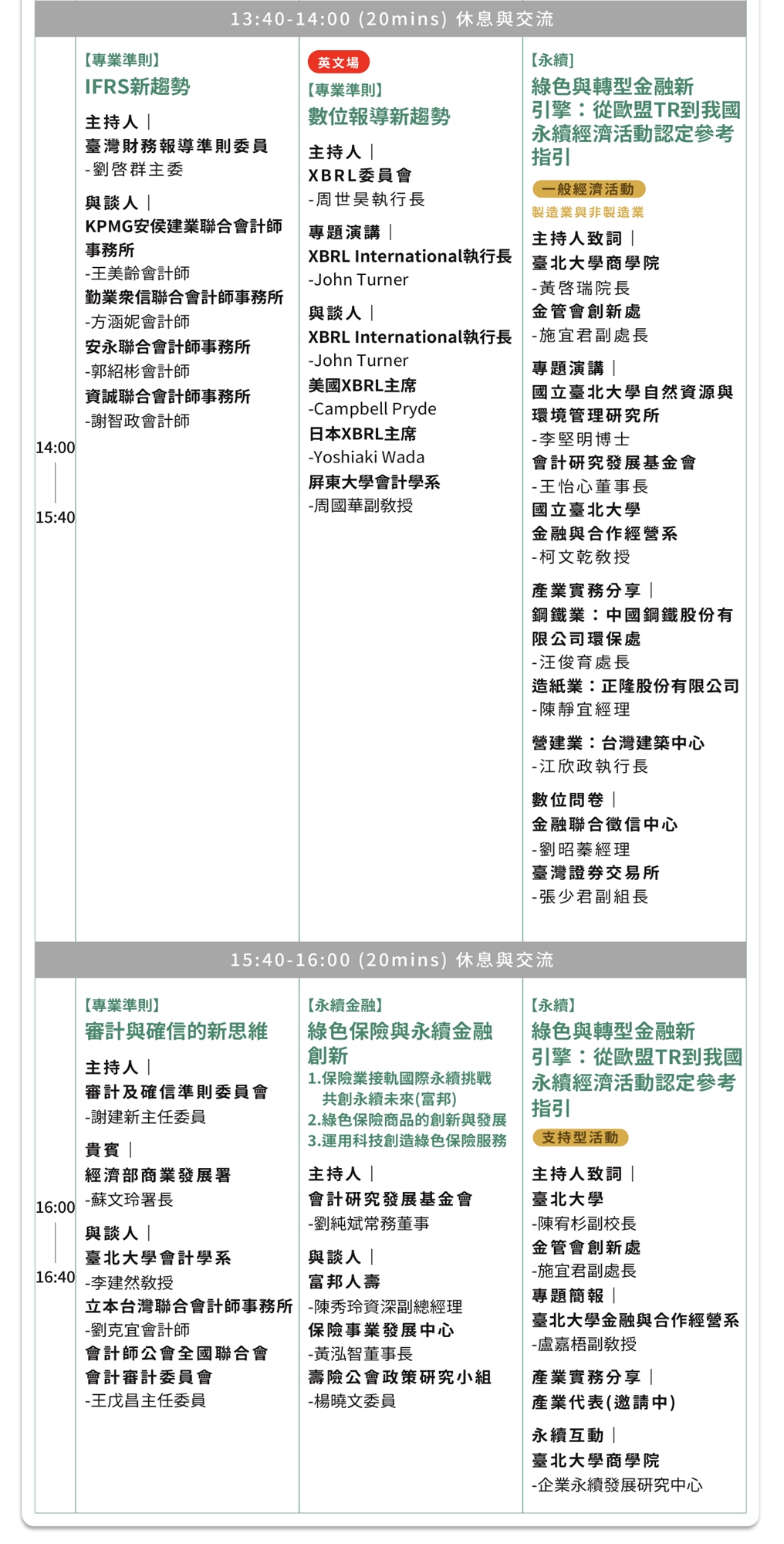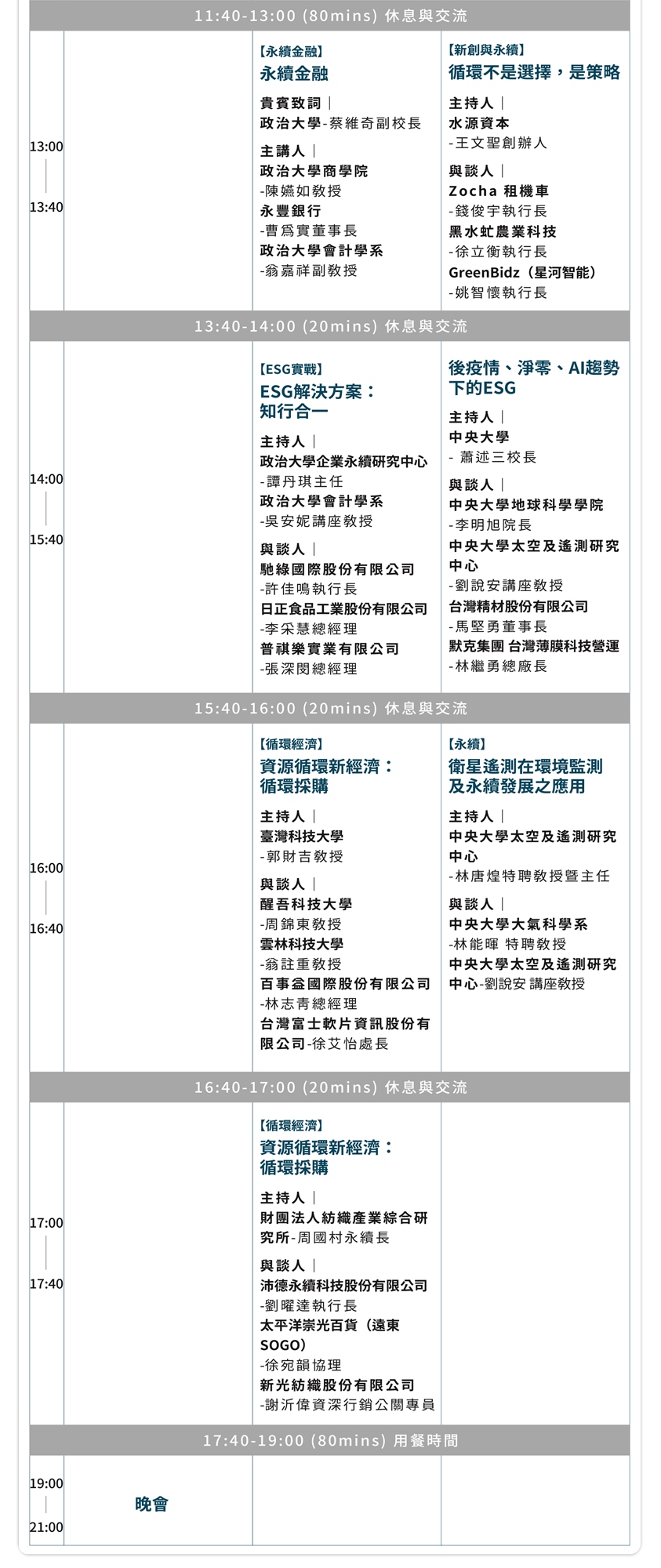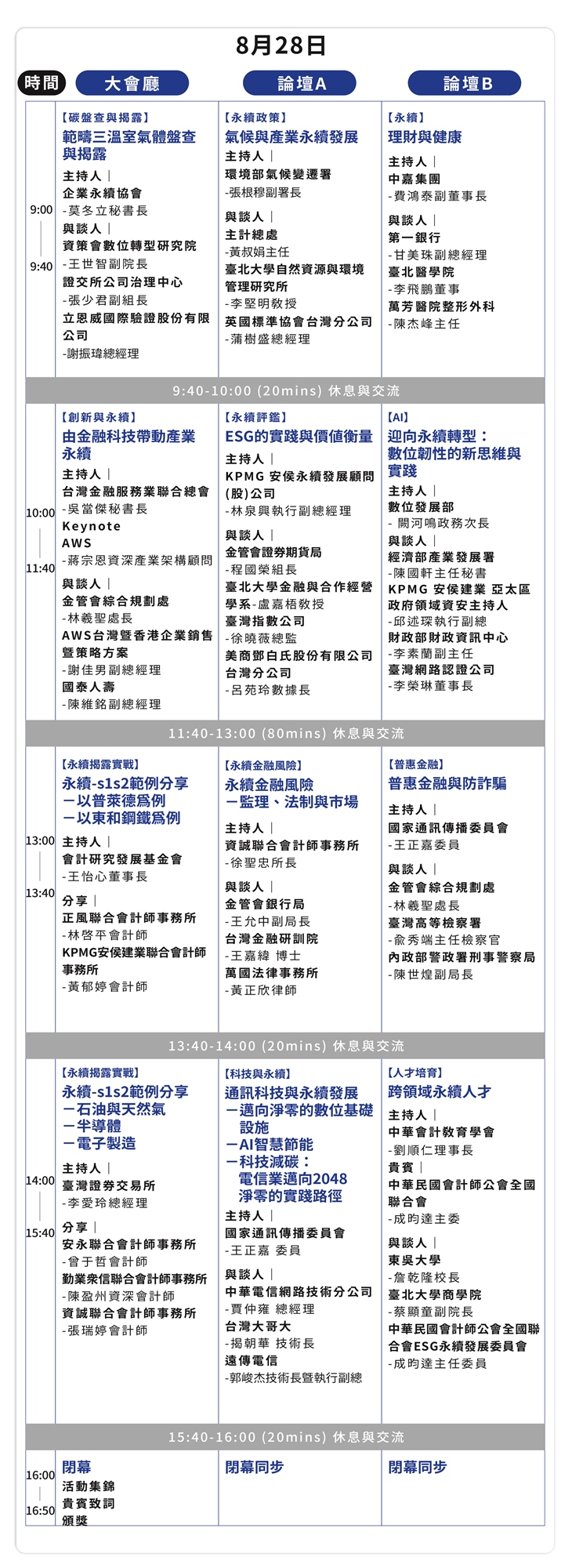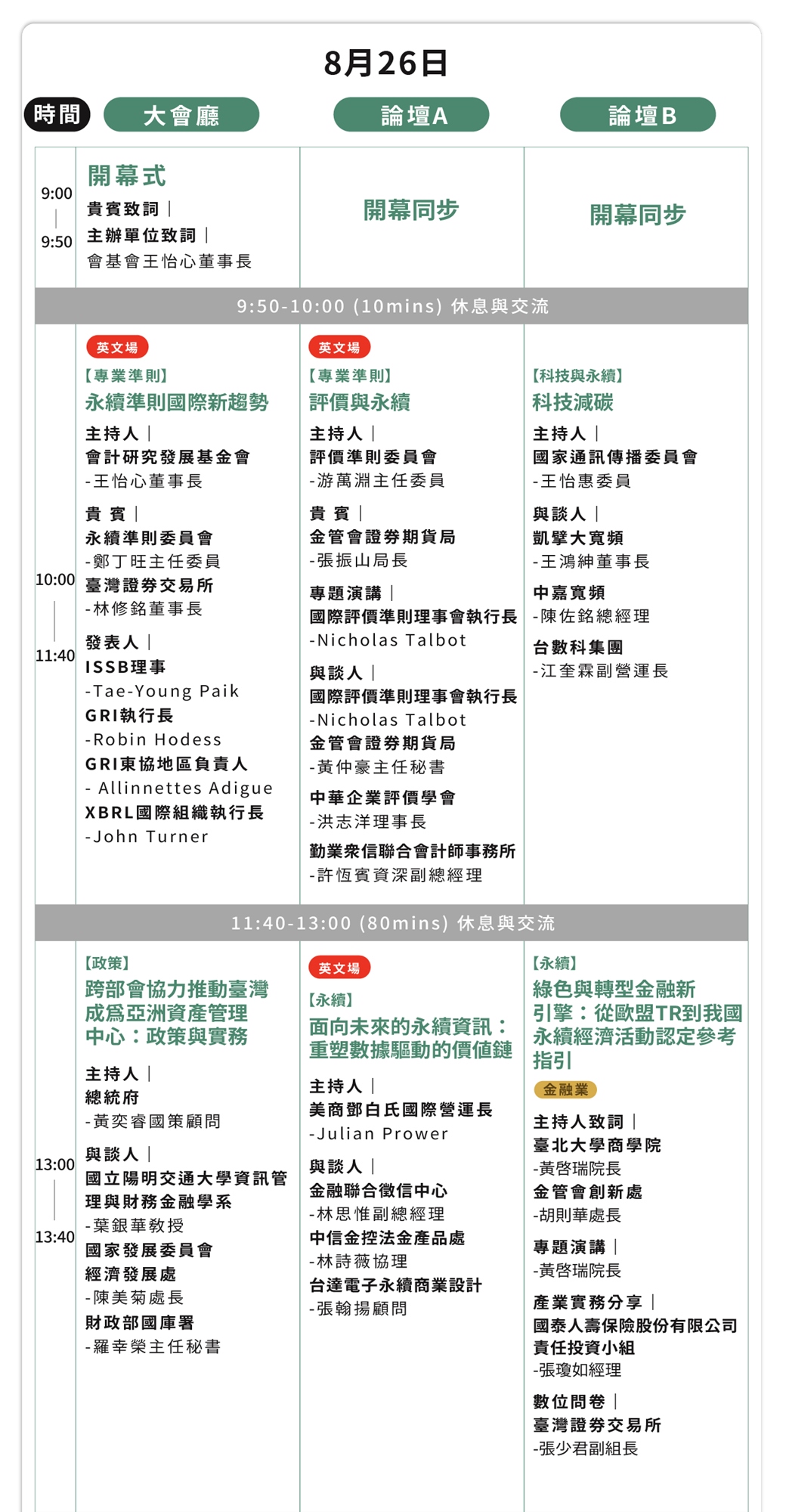 邀請國際永續專家,以及包括來自金融、科技及會計等多元領域的學者專家,進行深度討論與經驗分享,打造一場融合政策、準則與實踐的跨域盛會,有助各界提升永續競爭力。