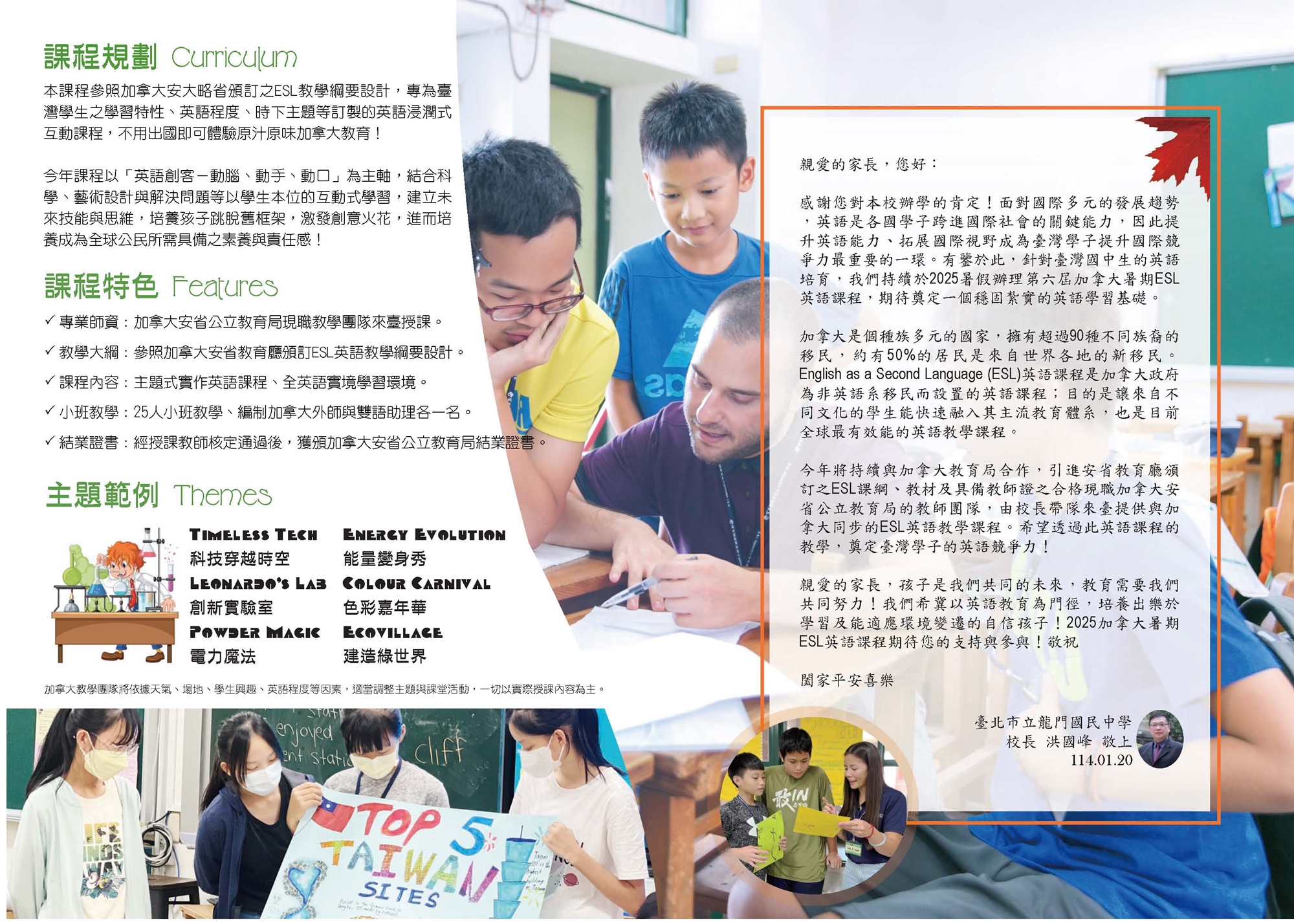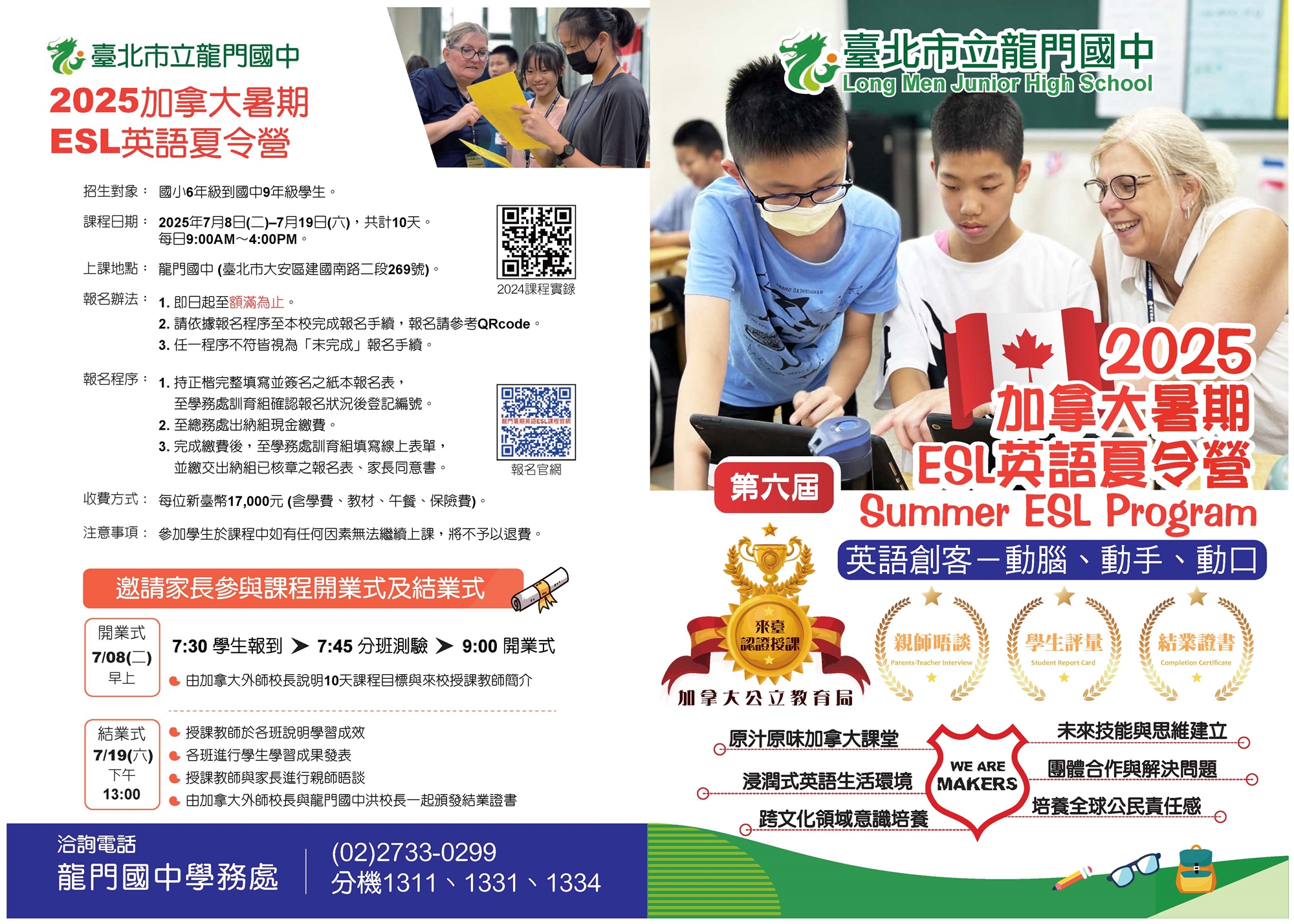🤩 龍門國中2025加拿大暑期ESL英語夏令營