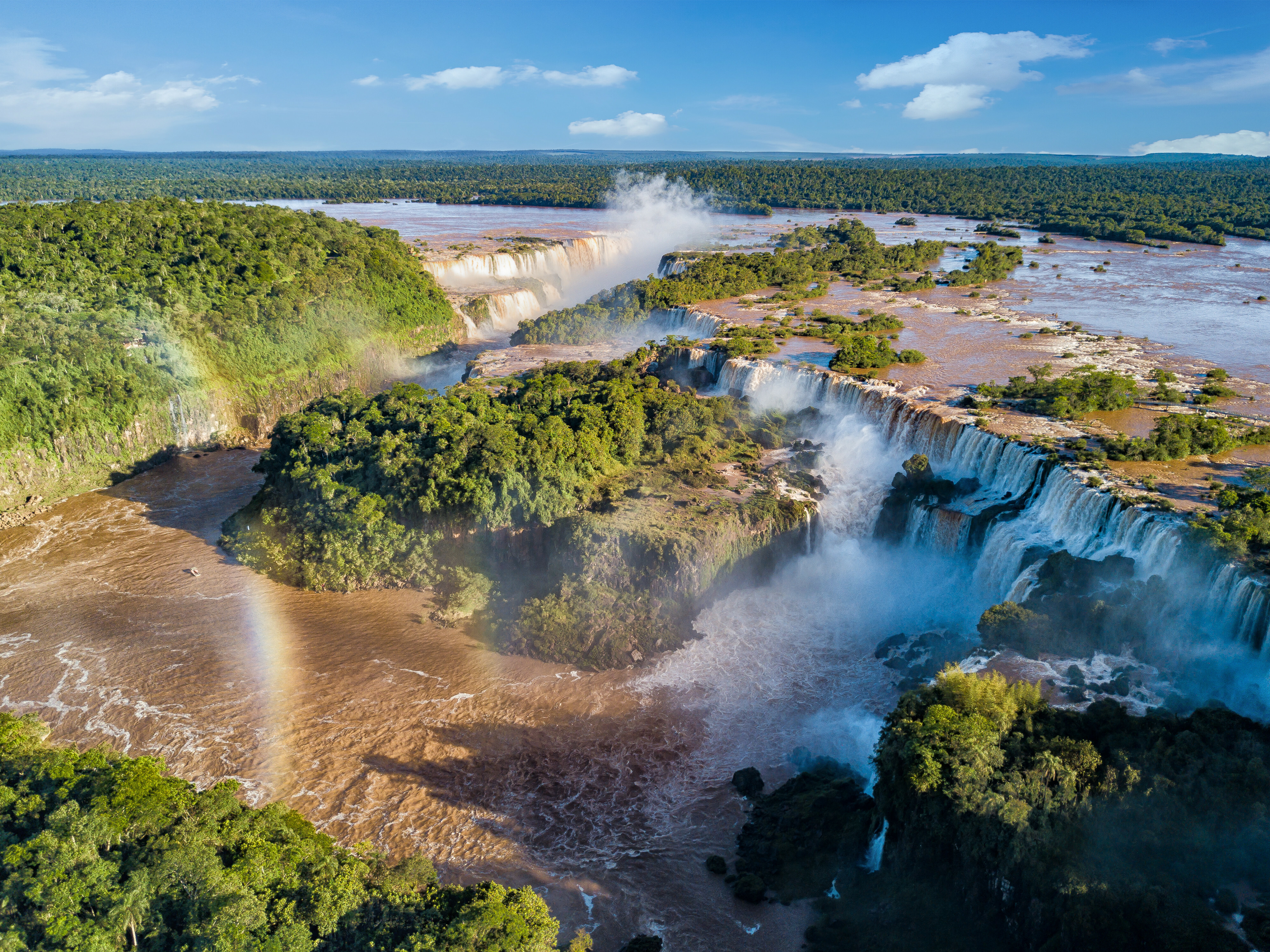 伊瓜蘇瀑布-位於阿根廷與巴西的邊界,瓜拉尼語意為「大水」,是世界三大瀑布之一,瀑布周圍有許多步道與觀景台,讓遊客可從不同角度近距離觀賞瀑布,或是選擇乘坐快艇,靠近瀑布邊緣,感受氣勢磅礡的震撼威力,或是搭乘直昇機,俯瞰其全貌。