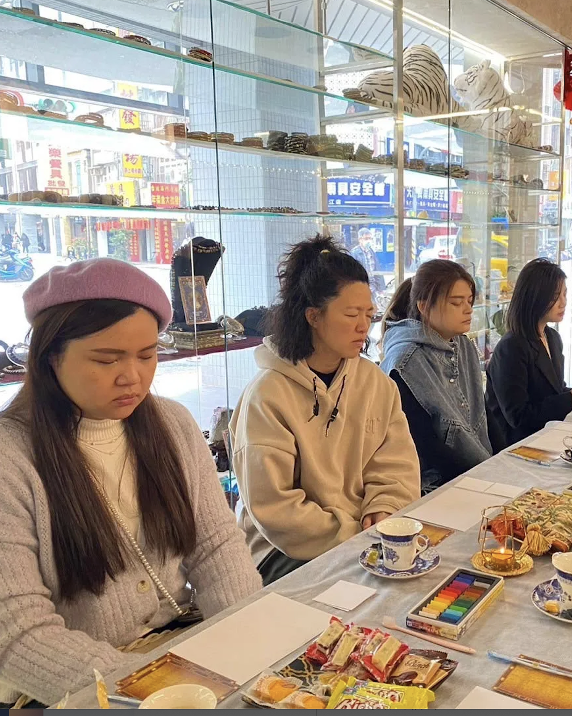 在靜心冥想的引導下,讓思緒沉澱,開啟感知之門,聆聽內在靈魂的呢喃,讓創作成為與自己對話的橋樑。