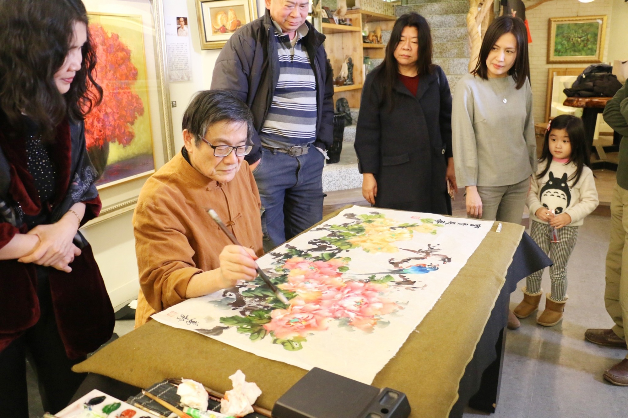 大師揮毫:牡丹王 邢萬齡大師,現場揮毫創作。