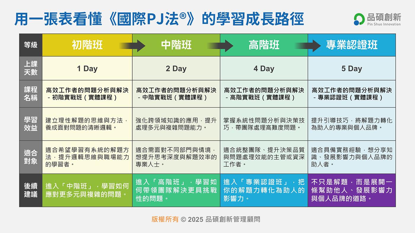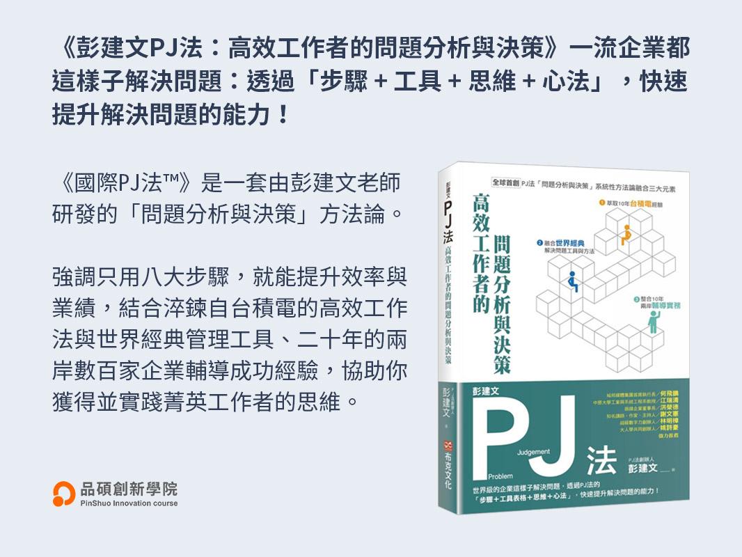 《國際PJ法®》高效工作者的問題分析與解決-實戰班( 初階 ) 6/28 實體課程,由彭建文老師主講!