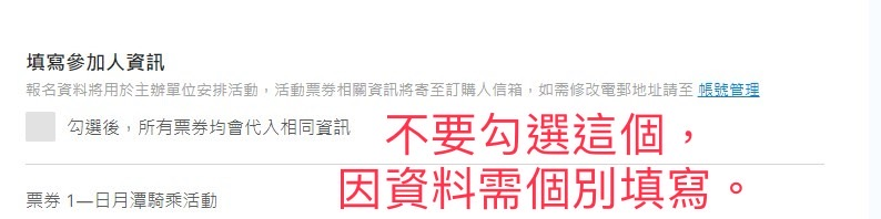 提醒!請勿勾選票券均帶入同一資料,因保險資料須個別填寫。
