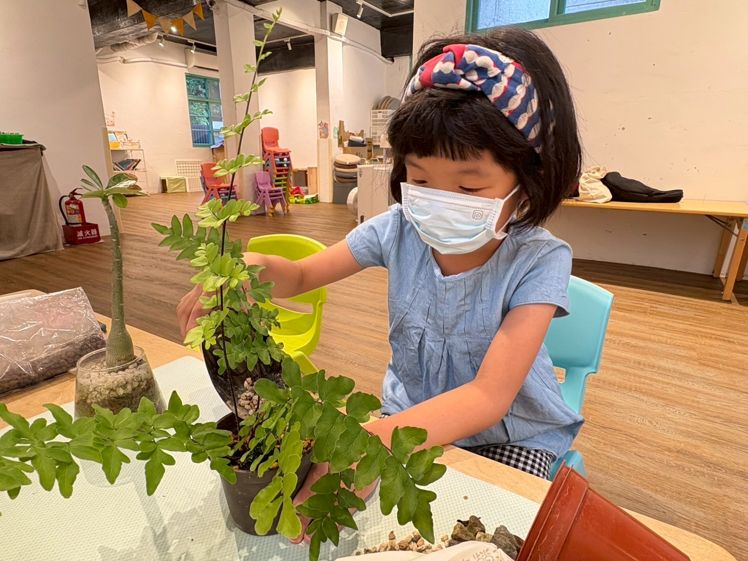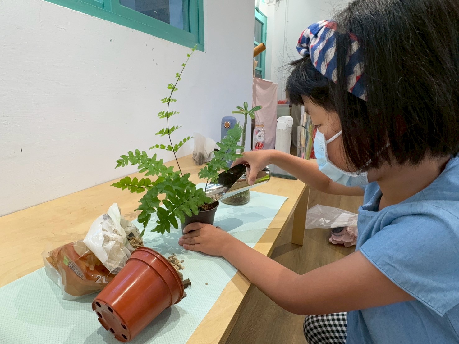 家庭感情需要培養與照護,將小苗細心種入盆器裡,帶回家好好照顧,寫一張感謝小卡插上去。