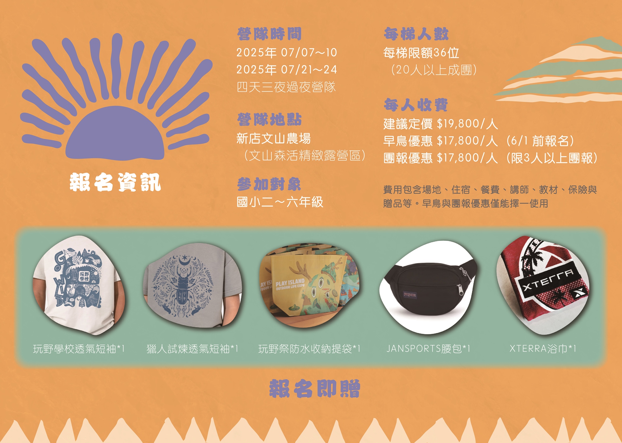 五. 2025玩野學校夏令營營隊為特定活動課程,最少20人開班,滿班36人 ; 若未達開課人數,扣除平台行政費用後退款。