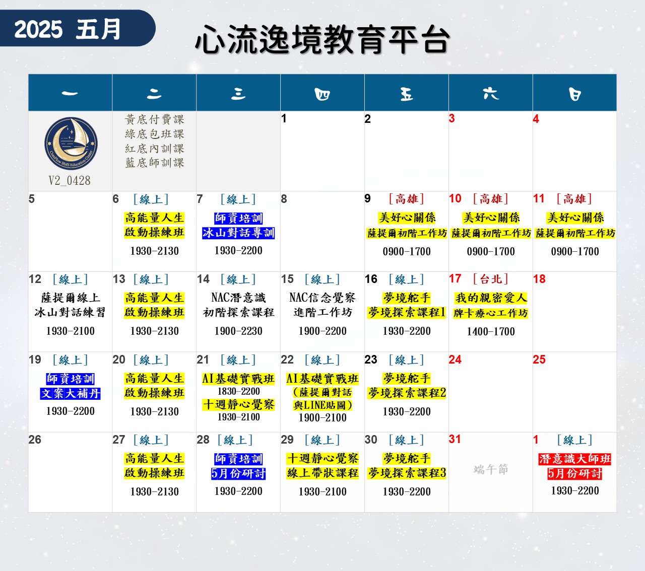 整合「潛意識轉化、心性修鍊、能量場調頻、生活實踐」四週線上旅程。