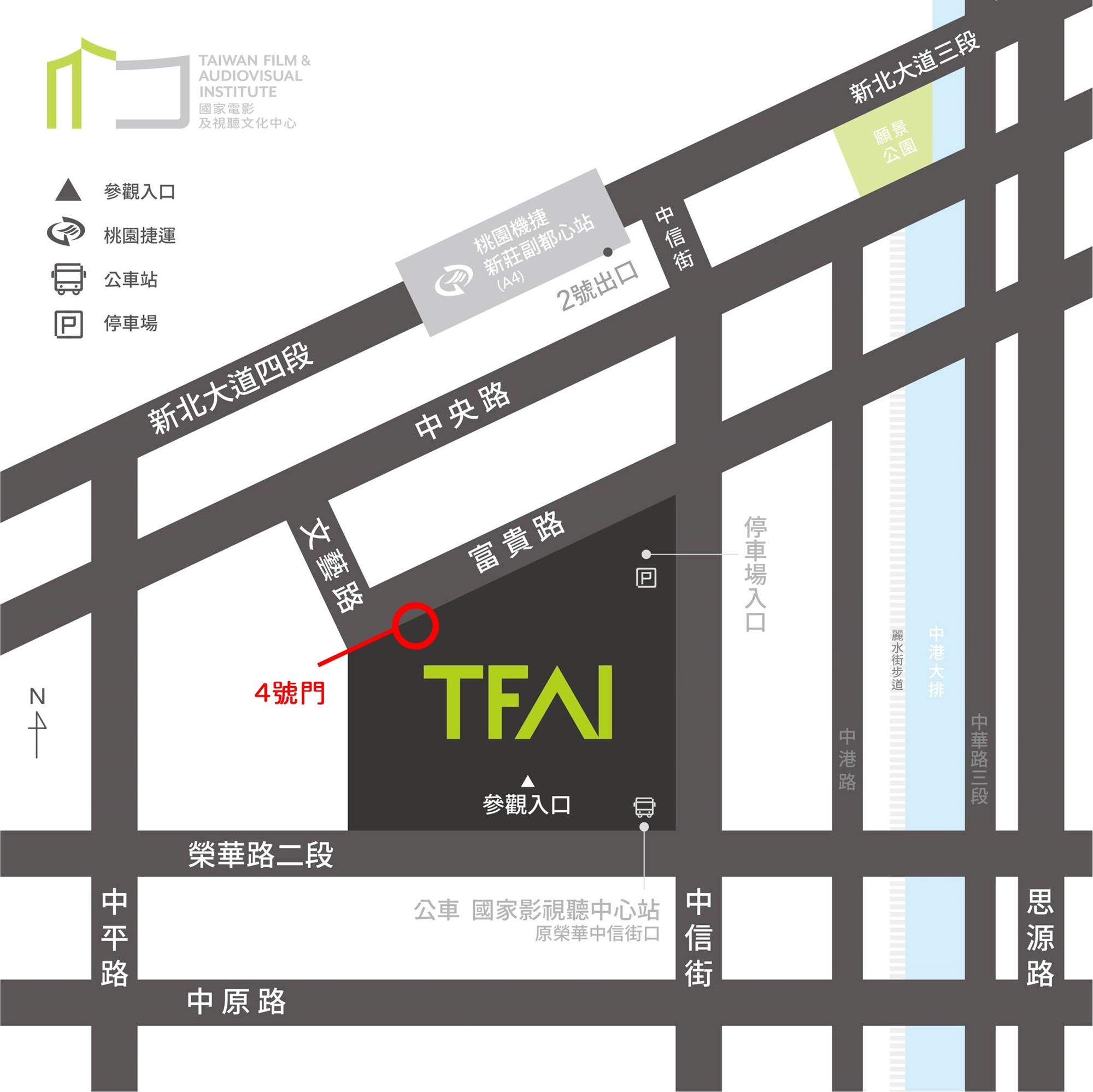 因報到時間尚未開館,請由影視聽中心4號門進入,如下圖所示。