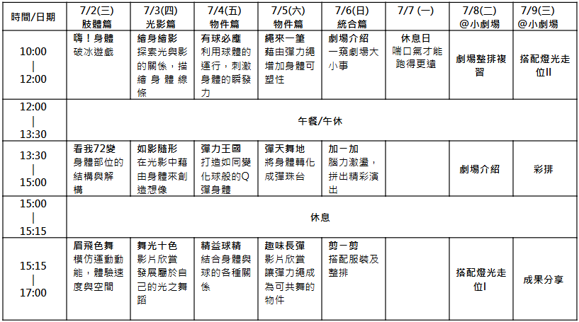 - 本課程共7天含1場成果呈現 ,恕不單堂分售;課堂如需請假請提前告知,不另行退費。