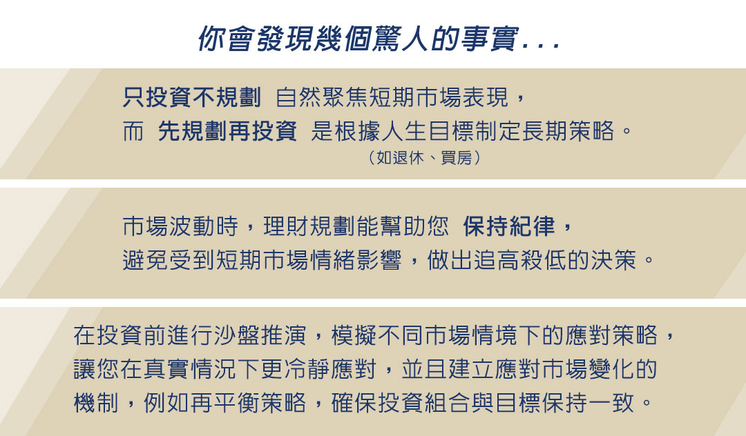 → 學會 根據個人目標制定財務計劃,而非盲目跟隨市場