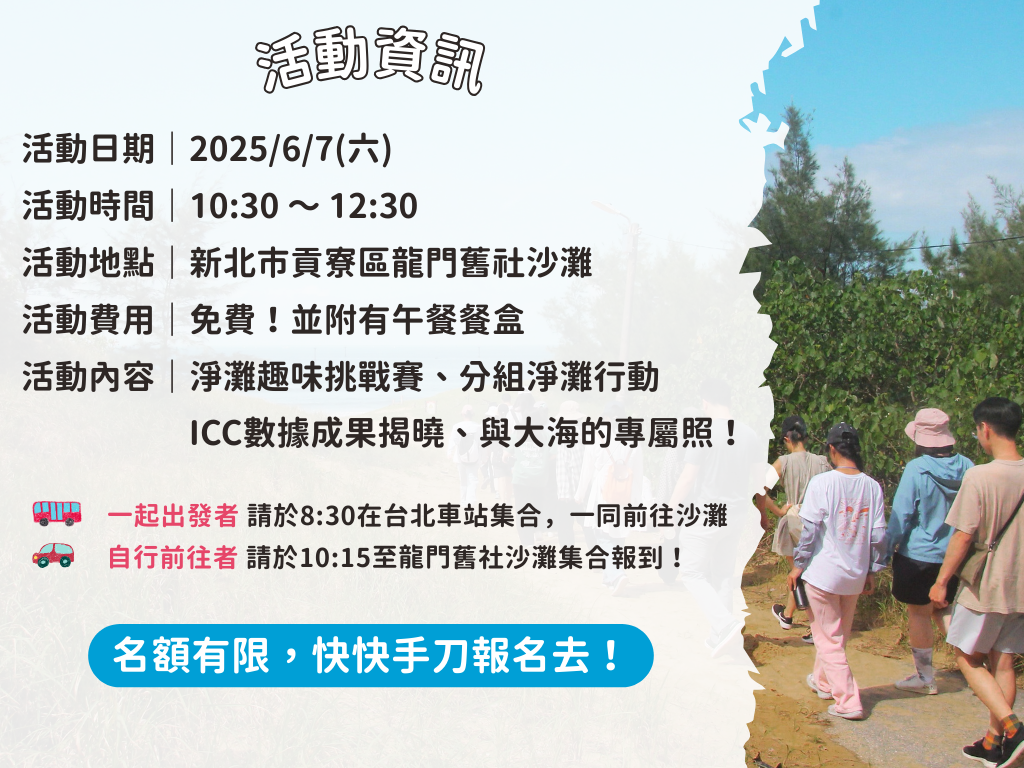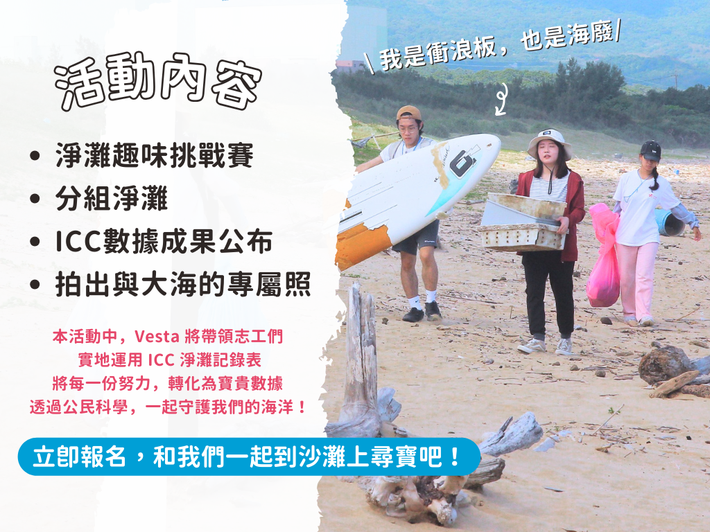 活動內容 |淨灘趣味挑戰賽、分組淨灘行動、ICC數據成果揭曉、拍出你與大海的專屬照