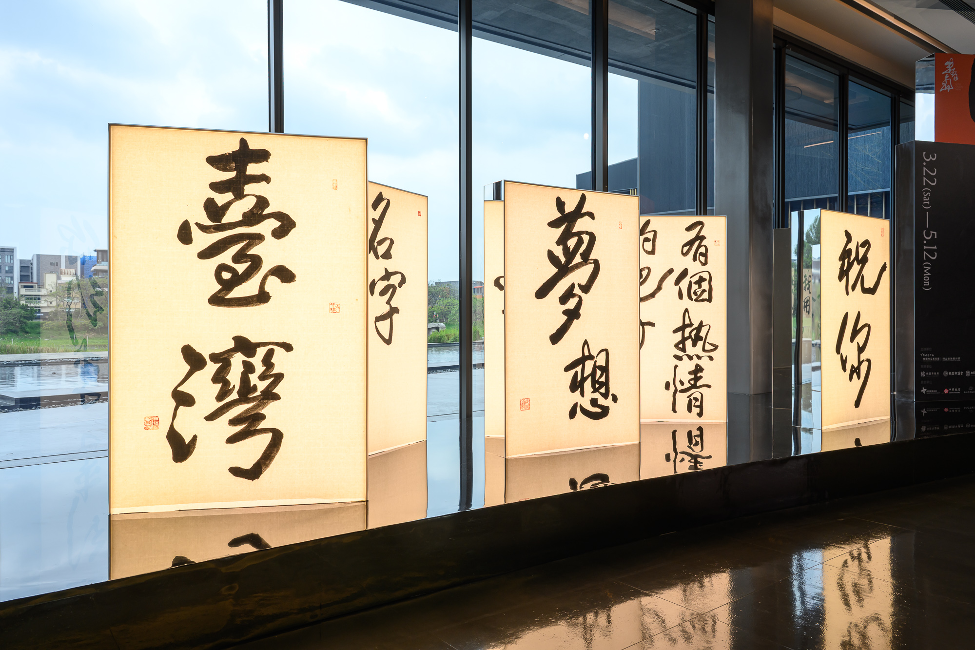 原作為昇恆昌邀請藝術家在桃園第一航廈所寫,由金曲獎作詞人方文山作詞、華語歌手徐佳瑩演唱,以水燈結合書法成為對旅人的祝福,營造出沉浸式的觀展體驗。