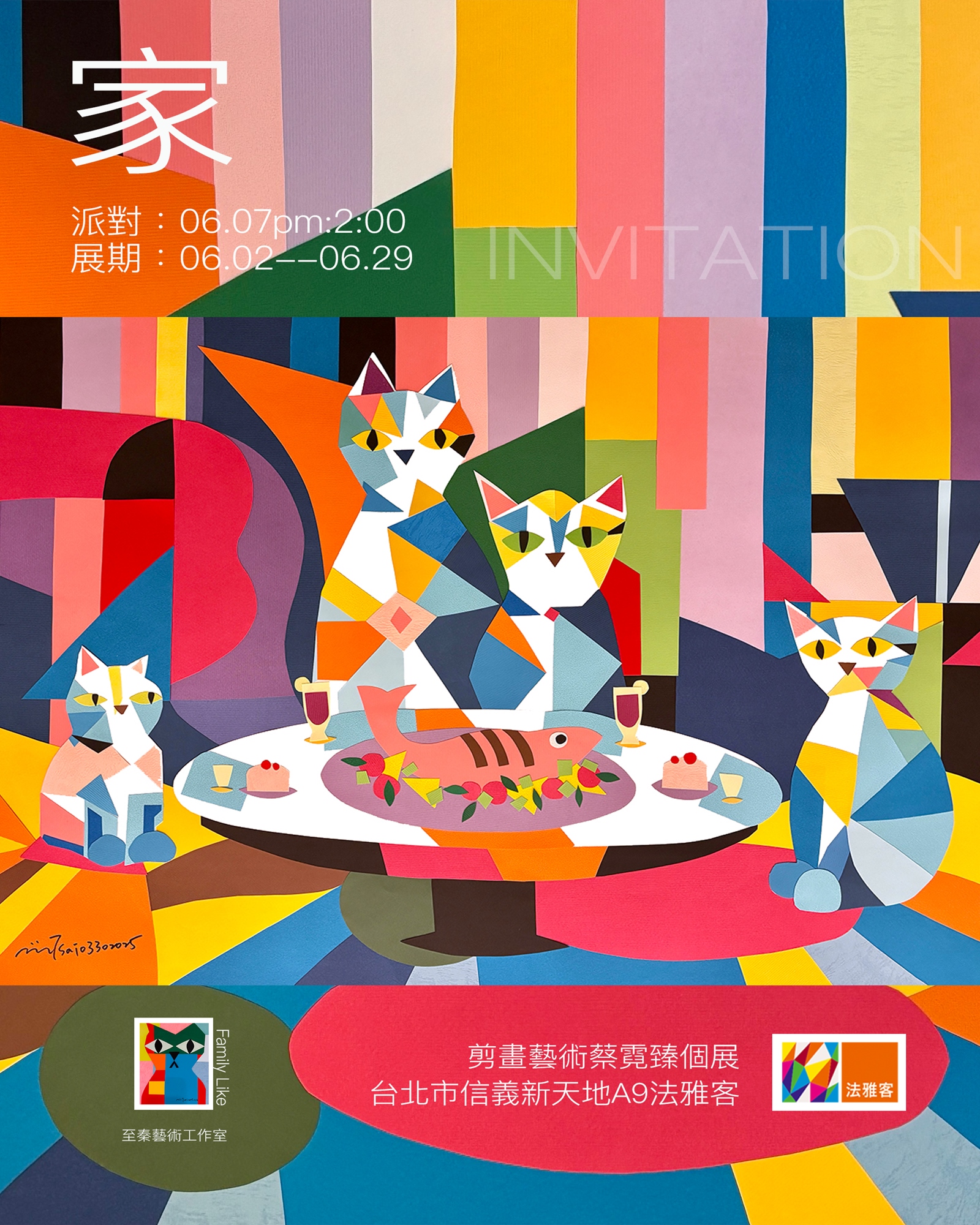 這一天限定的《家》畫展派對,不只是開幕,也是一次與「貓」與「你」共享的療癒小聚。當天除了藝術家親自導覽,還有小點心、展覽限定小禮與繽紛的拍照角落,歡迎所有愛貓人、藝術迷、家庭與朋友,一起來感受這份紙上拼貼出的情感風景。