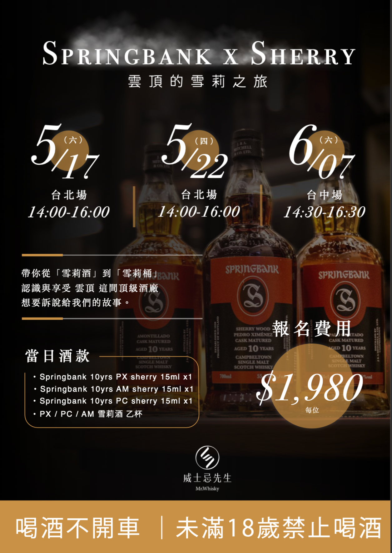 這場由 Mr. Whisky Taipei 主辦的品飲會,將帶領你從「雪莉酒」到「雪莉桶」,深入體驗雲頂酒廠欲傳遞的風味哲學與釀酒故事。
