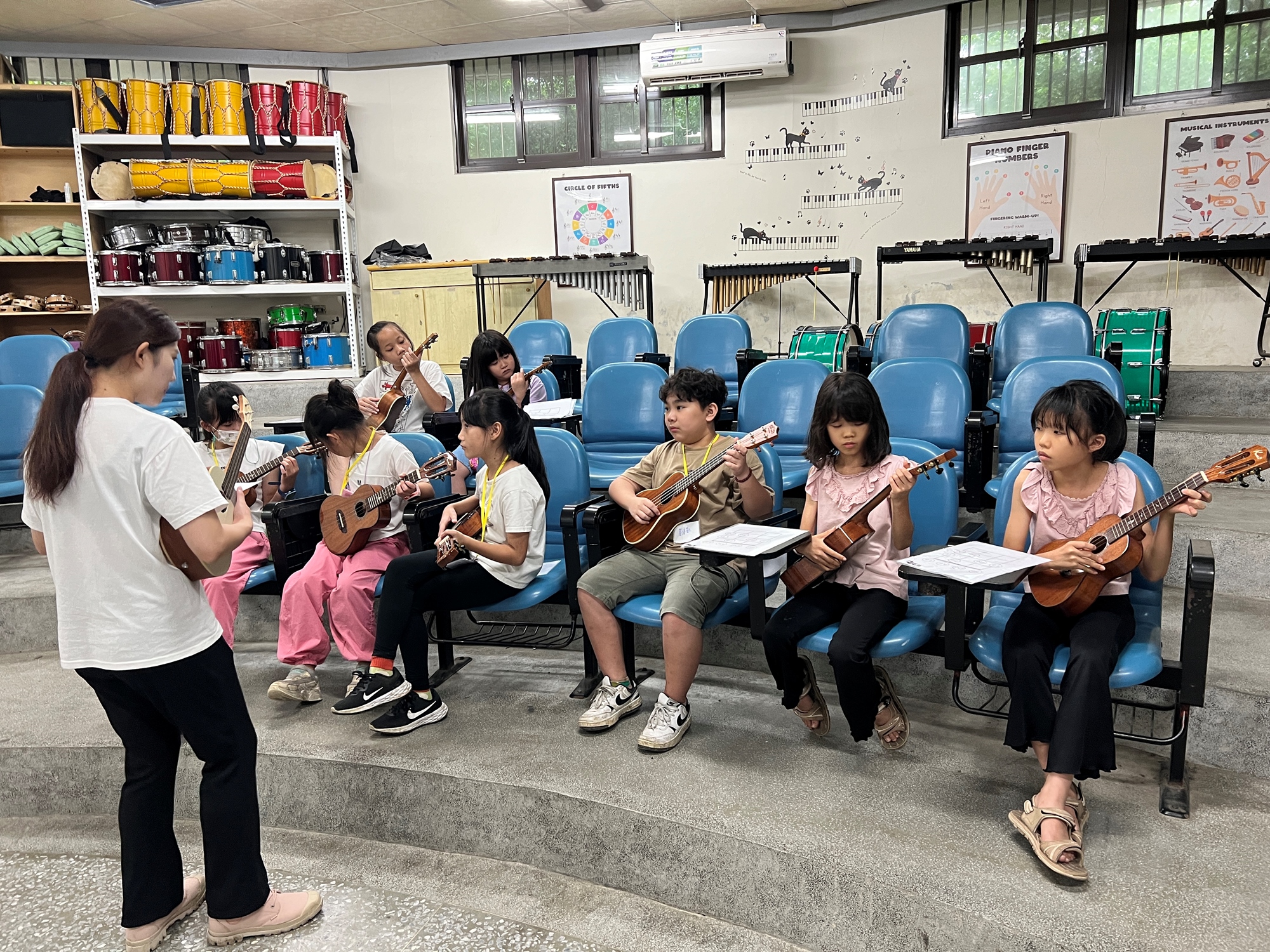 透過烏克麗麗教學、音樂帶動唱、客語歌詞教唱等面向,深入淺出一步一步帶領學童由音樂親近客家,進而能夠主動學習客語,提昇學童的客語使用能力。