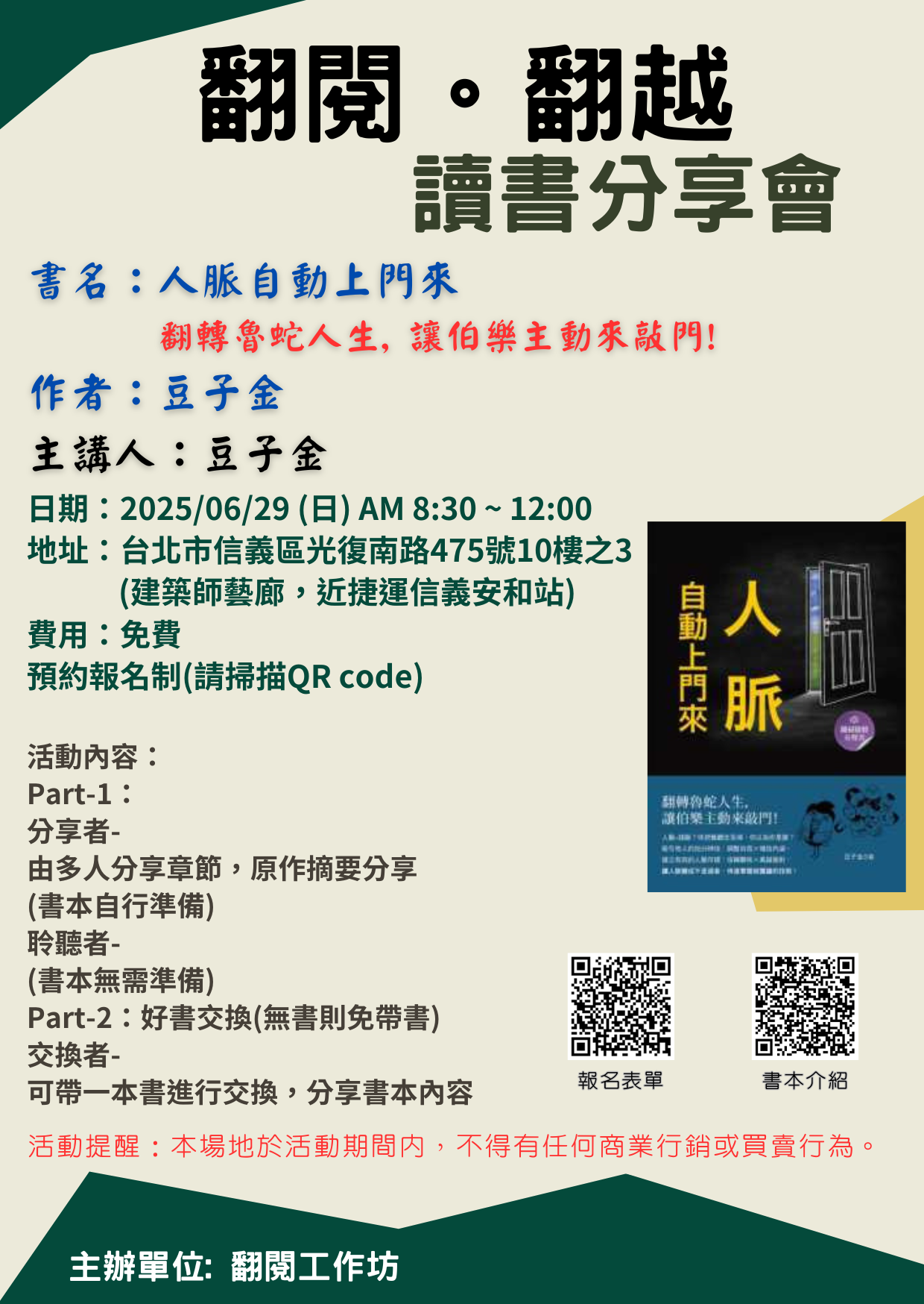 3.交換者,可帶一本書,與其他交換者進行簡單的原作摘要分享(書本準備一本)