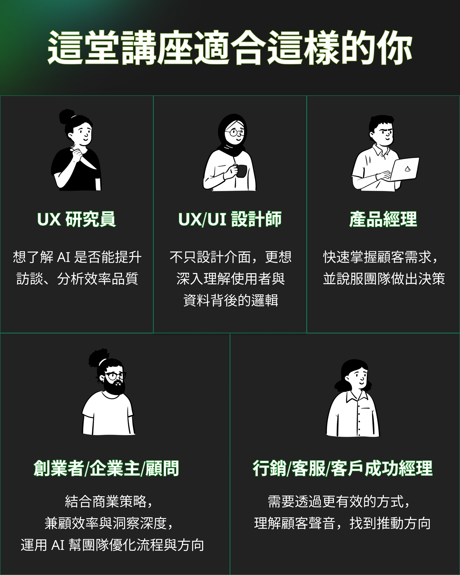適合需要進行顧客需求調查、對 AI 與 UX 研究協作感興趣者:
