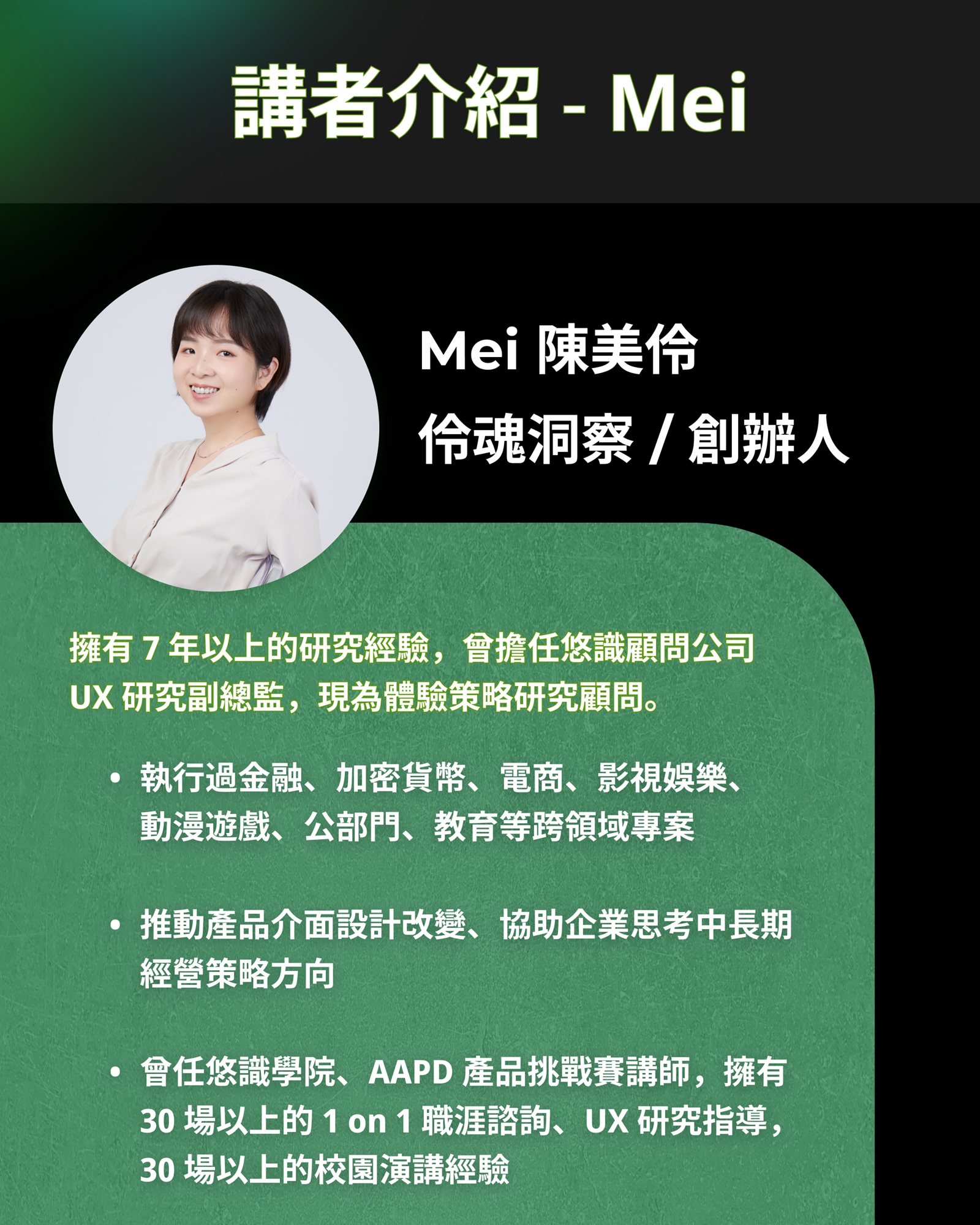 在這場分享當中,我們將分享使用 AI 輔助 UX 研究的實際經驗,