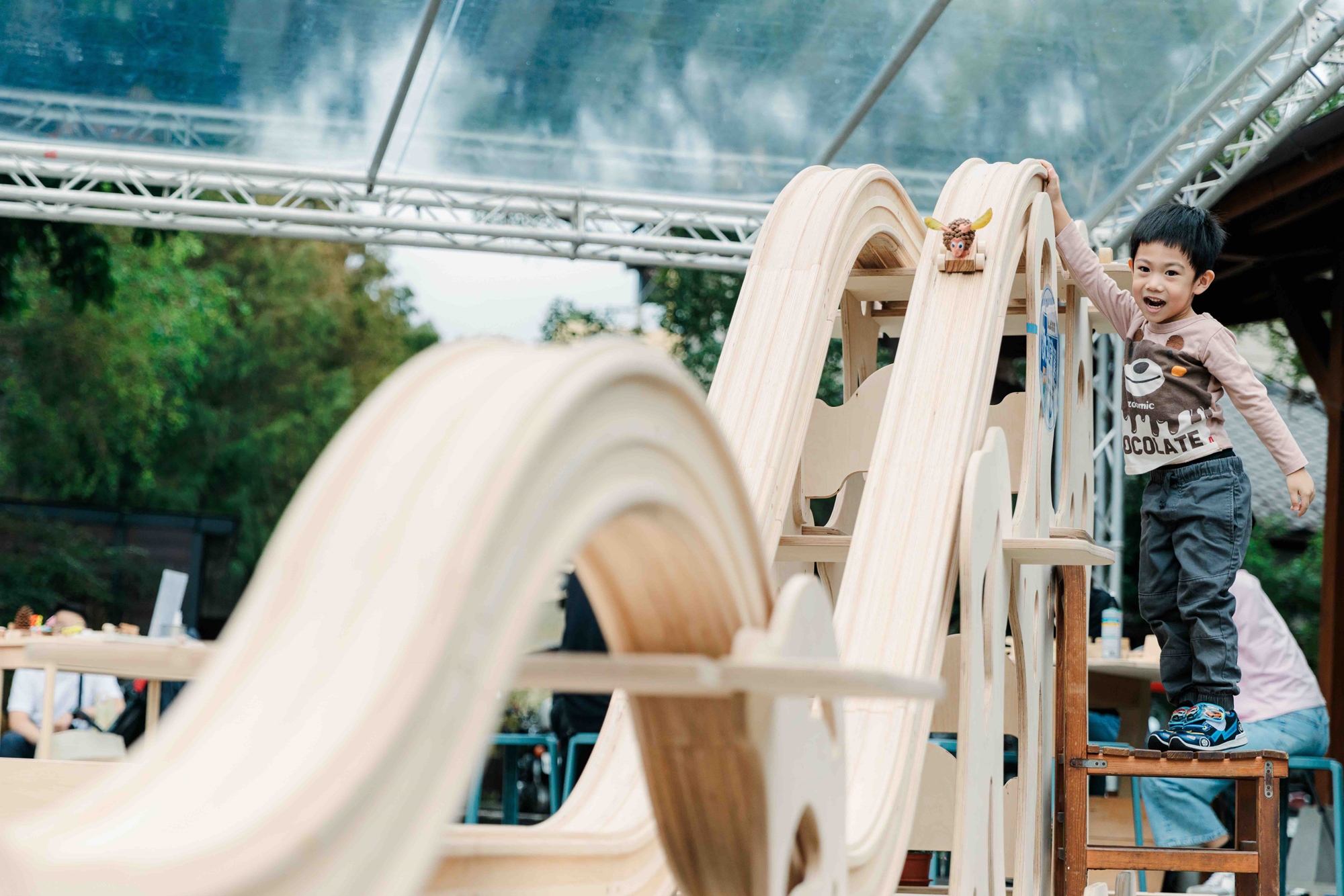 位於最新開放、再利用歷史建築大溪國小日式宿舍裡的小孩浴場——木育遊戲場,是一座有如「浴場」的沉浸式體驗,以木玩和繪本為媒介,帶領使用者從玩心與好奇中出發,讓過程成為創意與工藝的啟航點: Wood Start!