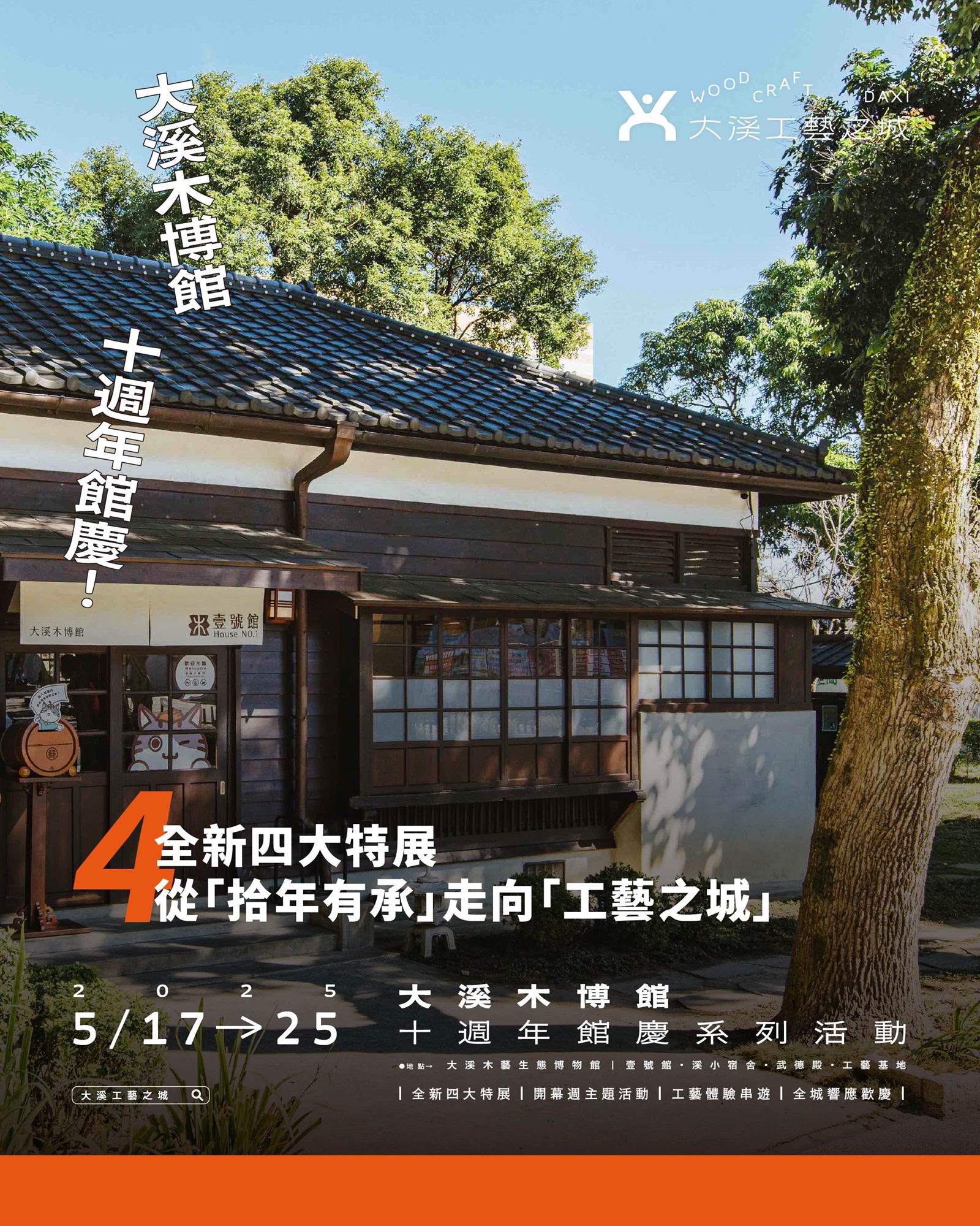 大溪木藝生態博物館從最初開館時僅有2個展館,到現今擁有 13 棟主要展館,重新打造大溪老城區的崖線景觀。本次特展《大溪100問》勾劃木博館成立至今十年的歷程和故事,也期待透過此展覽讓更多觀眾認識木博館,共同迎接下一個十週年。