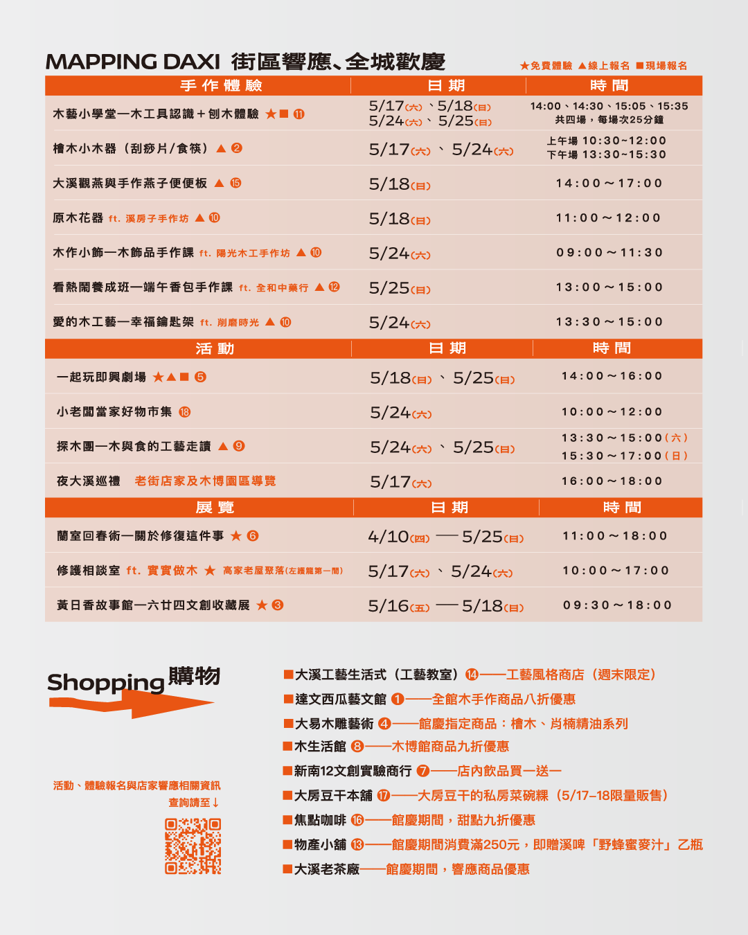 ∎ 開放時間:5/17 - 5/18,1400-1500,每日1場