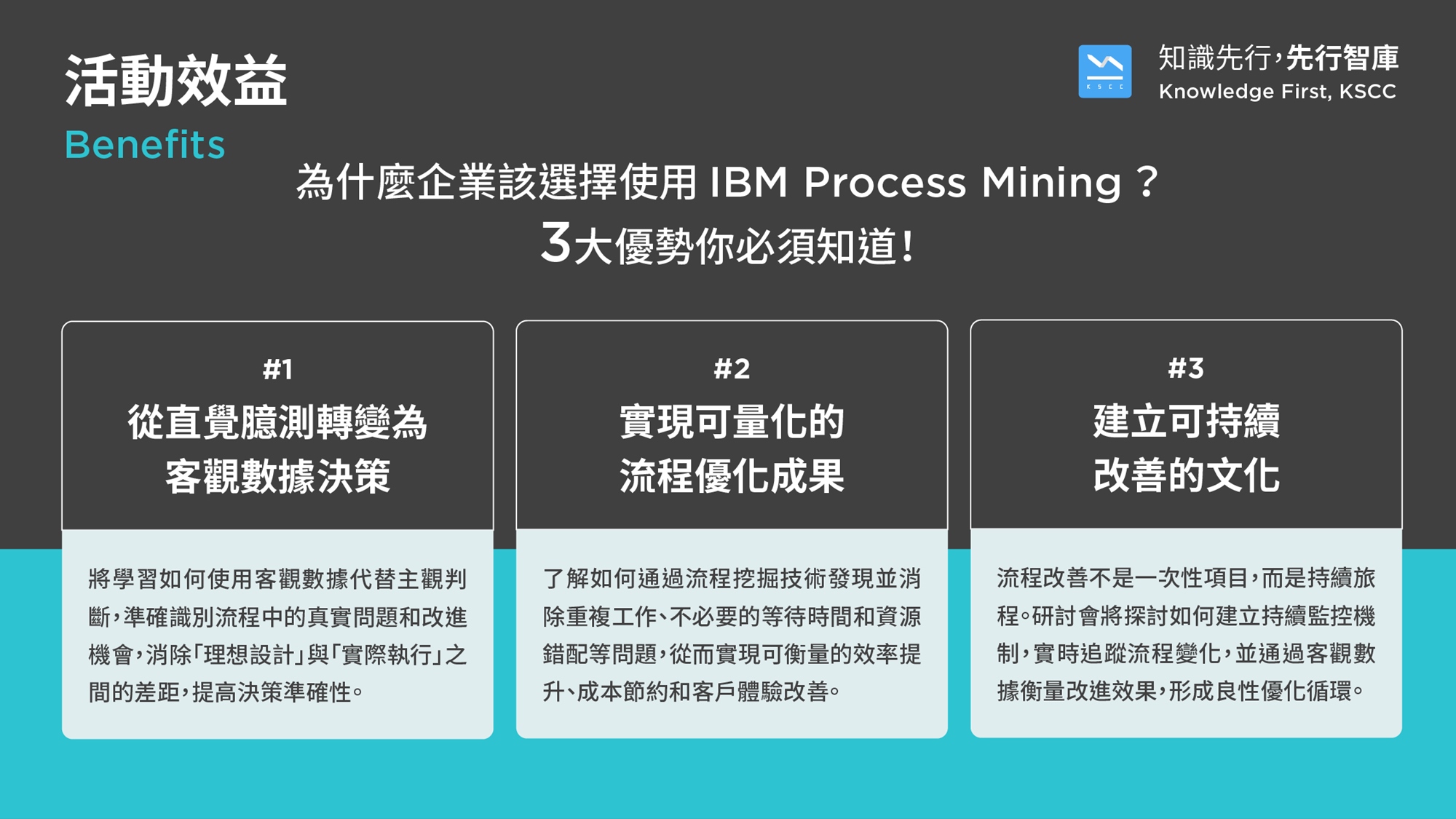 本研討會旨在幫助企業從數據視角重新審視流程管理,掌握流程挖掘的核心價值與實踐方法。