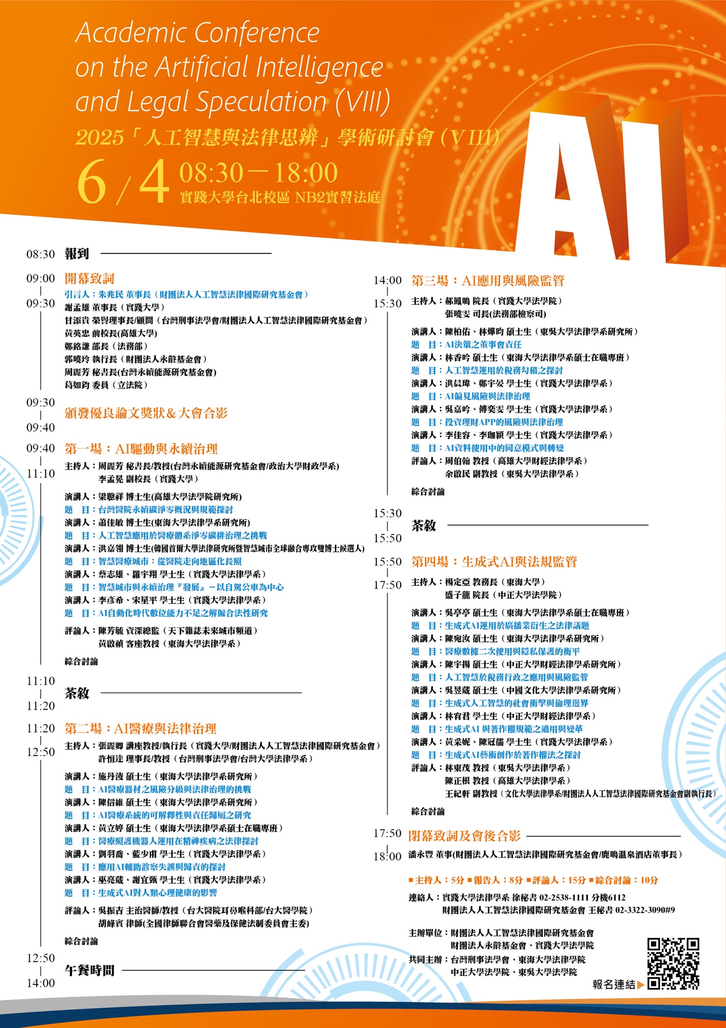 主辦單位:財團法人人工智慧法律國際研究基金會、財團法人永齡基金會、實踐大學法學院