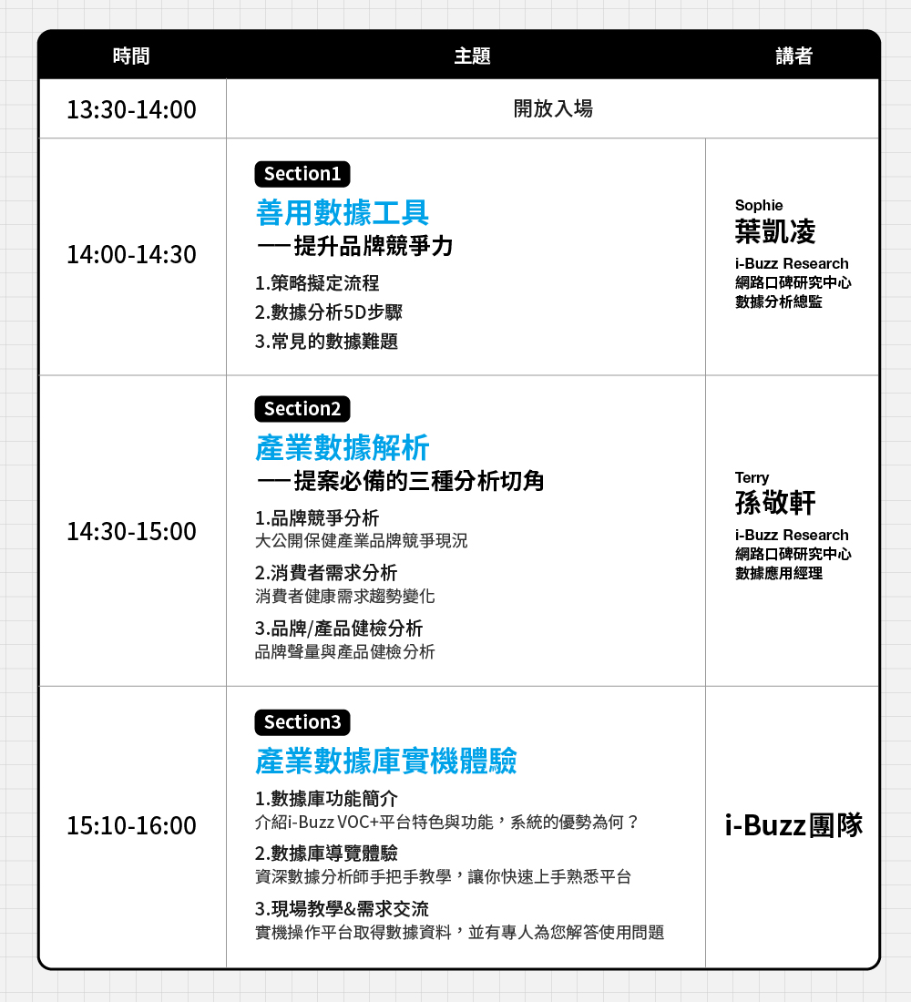 1.本活動為在職工作者專屬,採「審核制」、名額有限,僅限收到 i-Buzz Research 官方通知信者視為報名成功,恕不接受現場臨時報名。