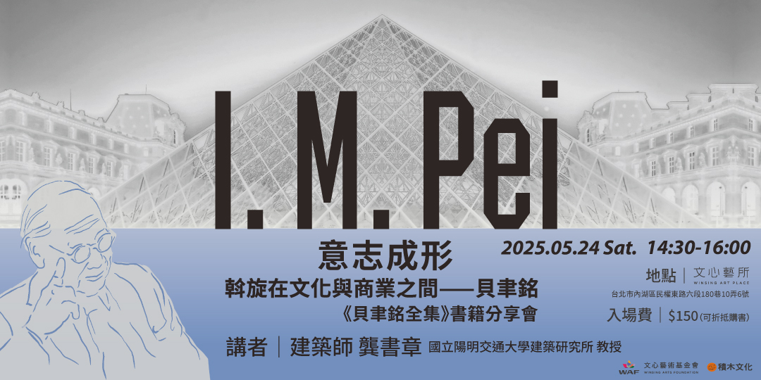 本場講座邀請到國立陽明交通大學建築研究所教授──龔書章 建築師,從貝聿銘與王大閎在哈佛大學設計研究所的畢業設計談起,帶領我們一窺兩位建築師對現代主義與文化傳統的不同回應。並深入解析貝聿銘建築的思想脈絡,談他如何從斡旋於權力與商業之間,找尋「公共性」的可能,又如何一路走向「文化性」的探索。更將帶領我們思考,貝聿銘如何透過建築形式,回應自身的文化與意志。
