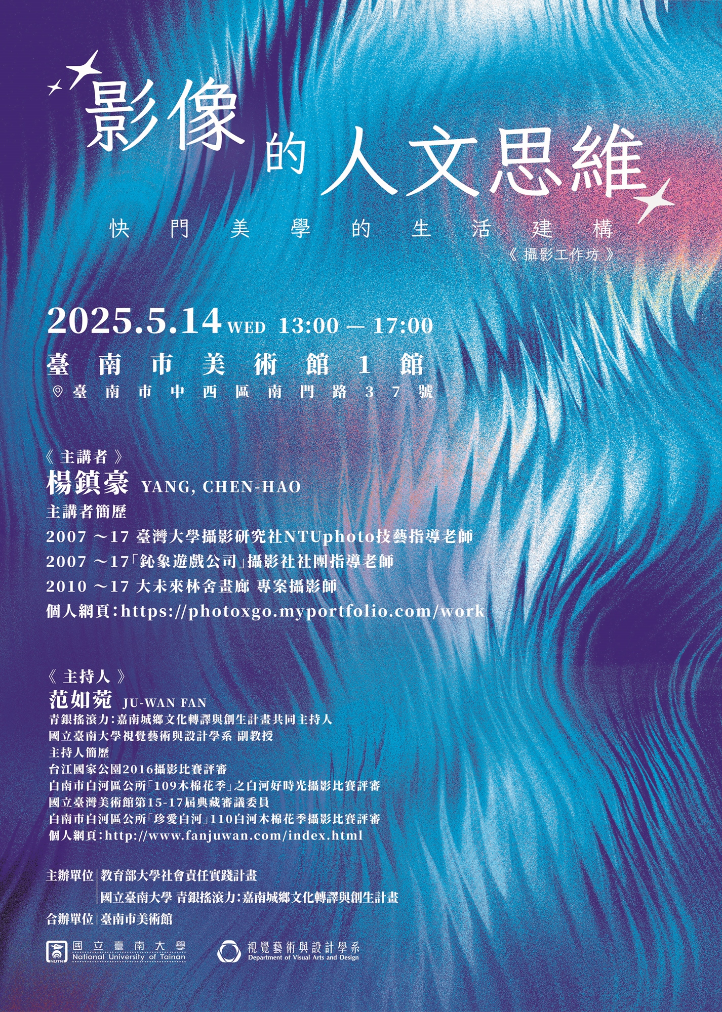 在日常的光影之間,如何用一張影像,傳遞人文精神與地方記憶?本工作坊由國立臺南大學「青銀搖滾力」USR計畫主辦,延伸校內社會實踐課程,結合「攝影設計(二)」教學與臺南市美術館「銀藝流光」推廣活動理念,以攝影作為橋樑,連結學員與社區、臺南市美術館與生活現場。