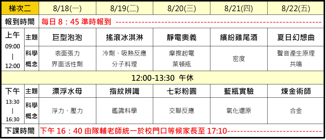 ⚛︎ 活動時間:(各梯次為期5天,活動時間為早上9:00至下午16:30)
